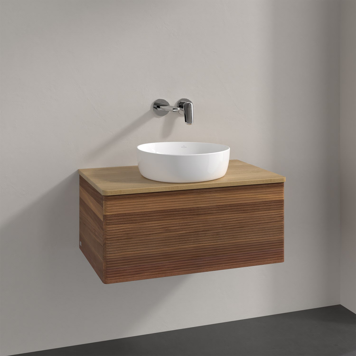 Villeroy & Boch Antao Waschbeckenunterschrank, 80 x 36 cm, 1 Auszug mit LED-Licht, Front mit Struktur, ohne Hahnloch