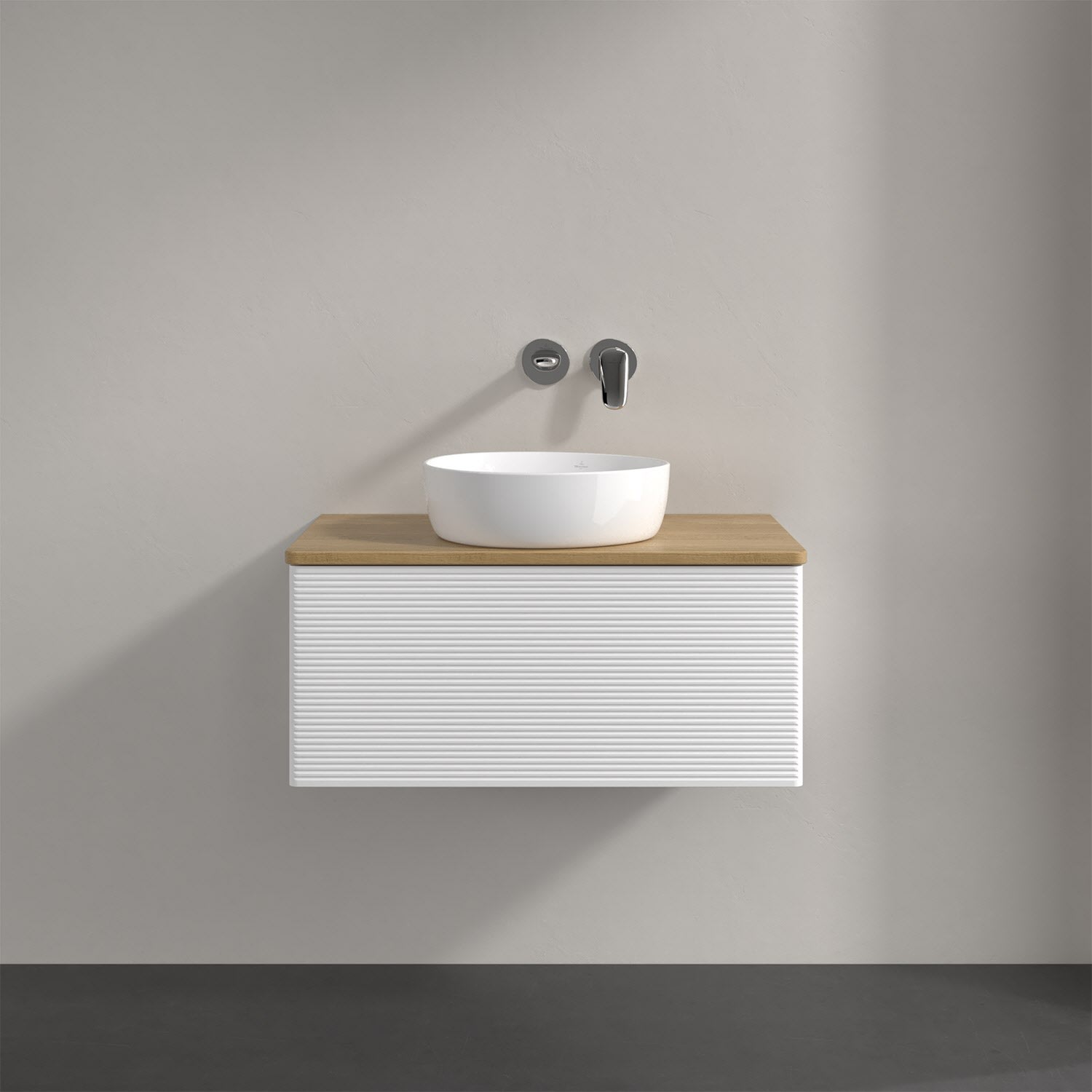 Villeroy & Boch Antao Waschbeckenunterschrank, 80 x 36 cm, 1 Auszug mit LED-Licht, Front mit Struktur, ohne Hahnloch