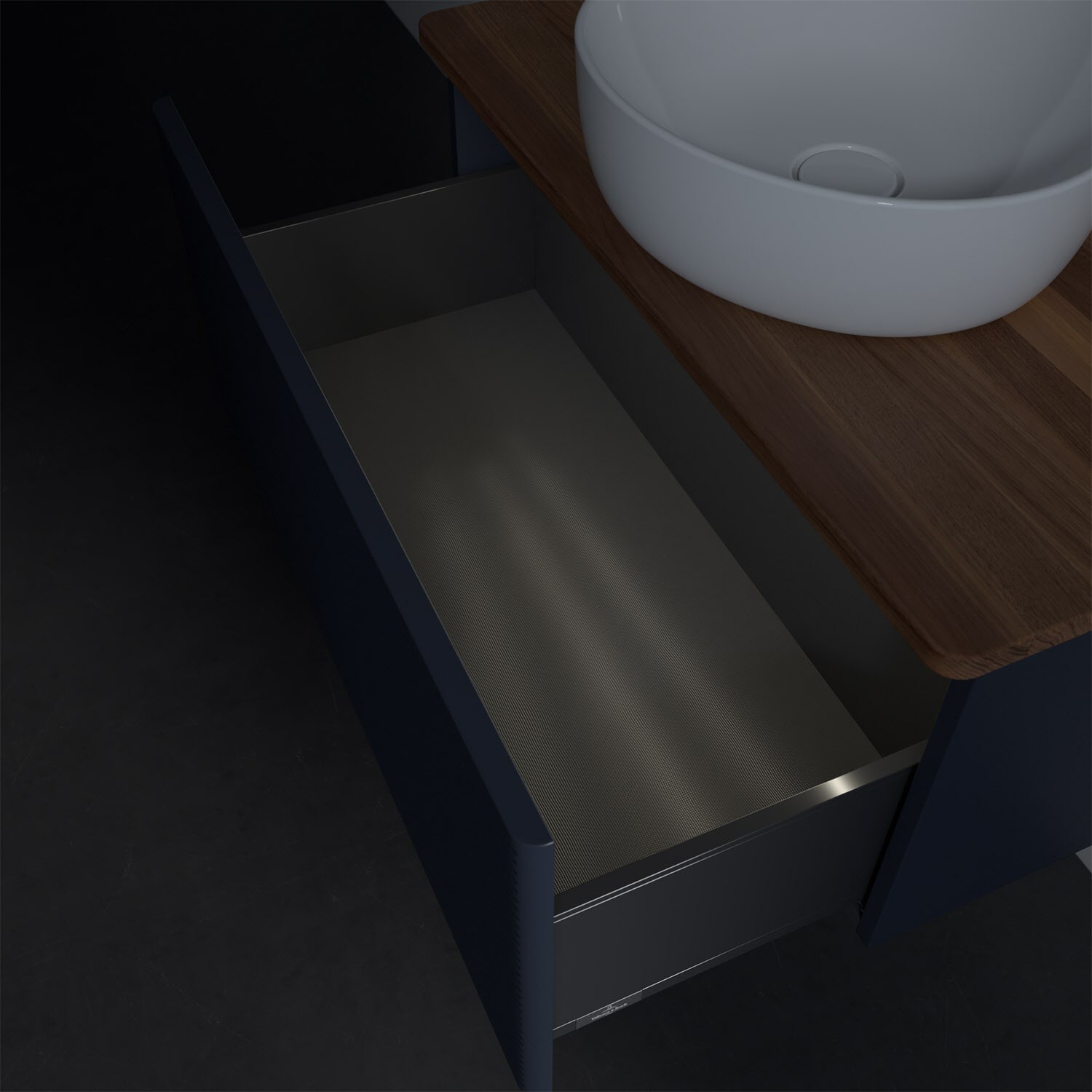 - in Schublade integrierte LED-Leiste mit warmweißem Licht zur Beleuchtung des Innenlebens
