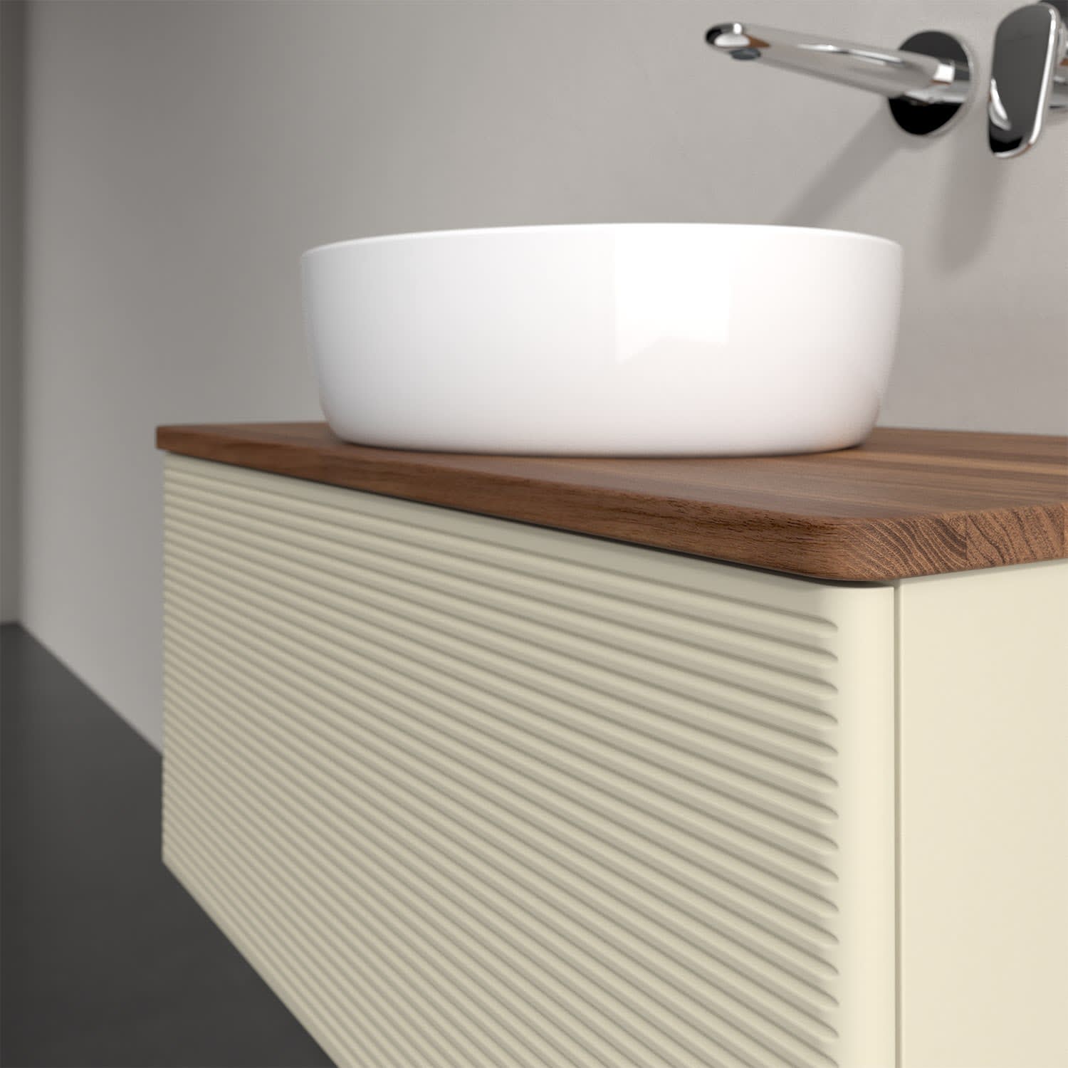 Für diesen Waschbeckenunterschrank stehen Ihnen Aufsatzwaschtische aus verschiedenen Serien zur Verfügung (siehe "Passliste" unter Downloads). Ein ausgewähltes Beispiel finden Sie im Zubehör. Den Waschtisch bitte separat mitbestellen.