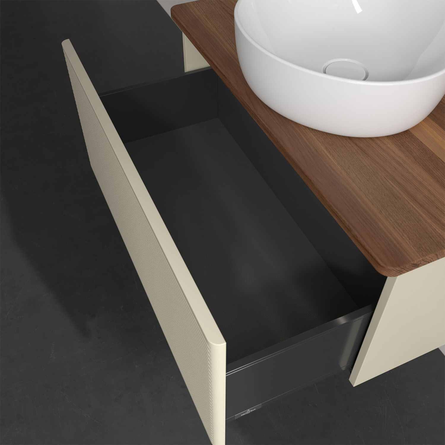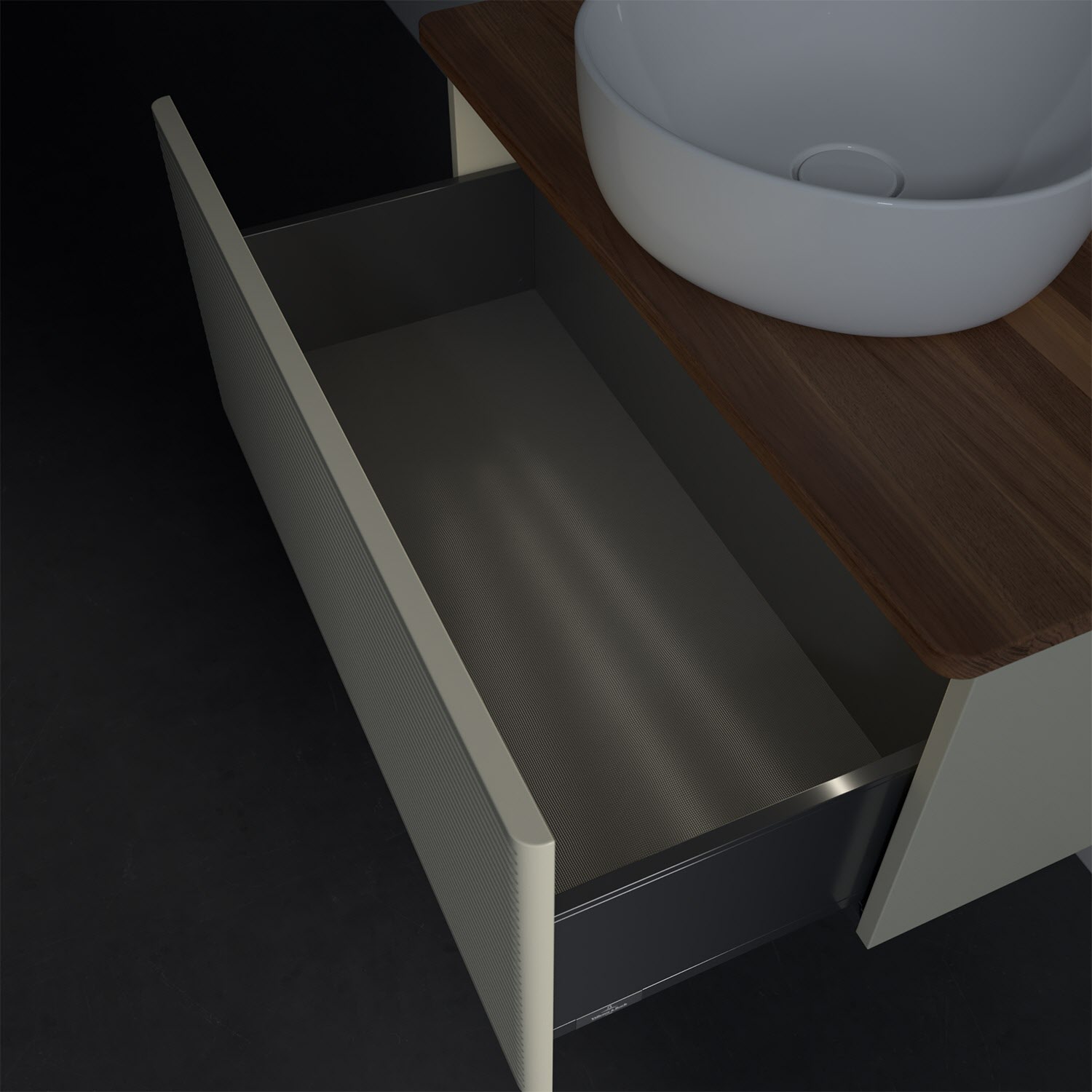 - kein Umfallen oder Verrutschen von Pflegeprodukten in den Schubladen dank rutschhemmendem Boden