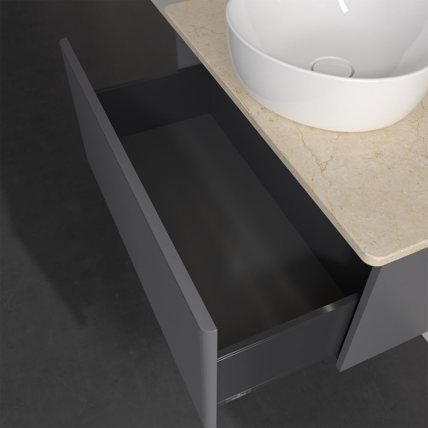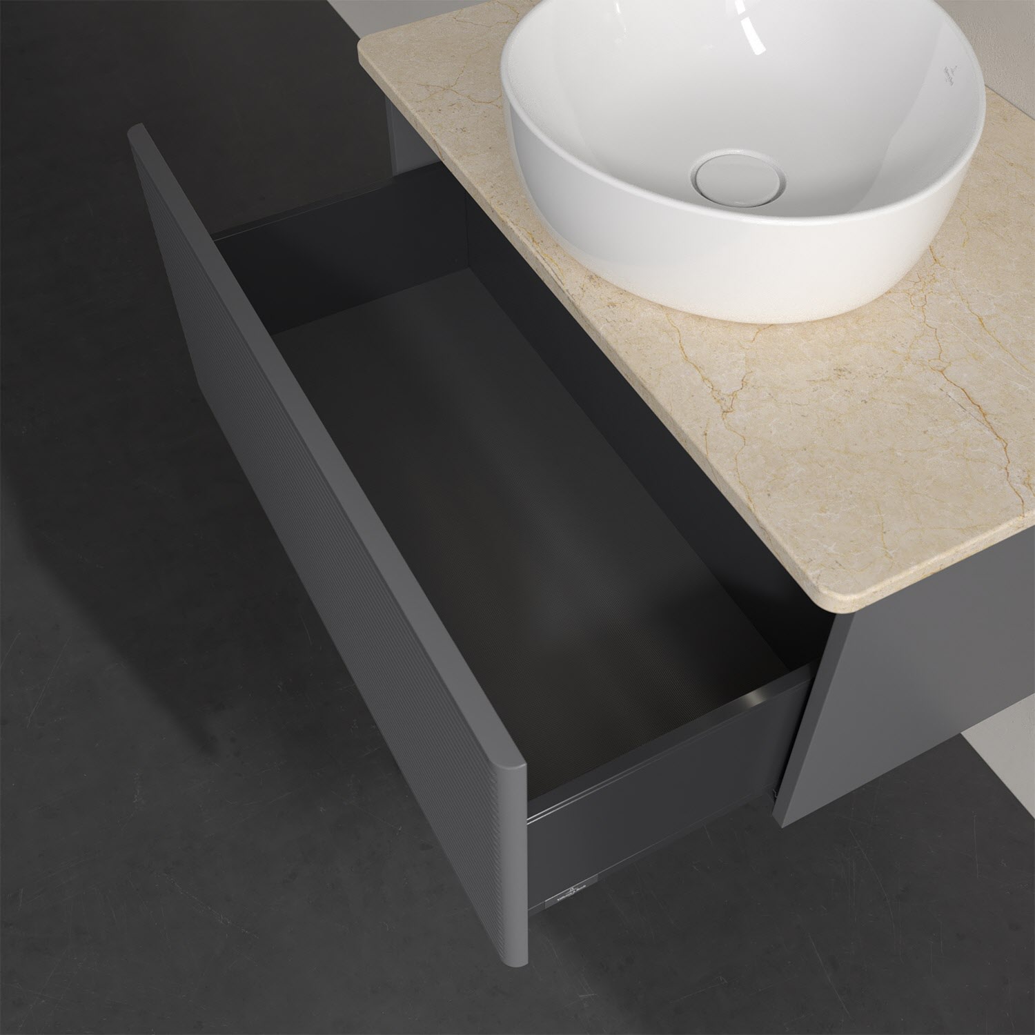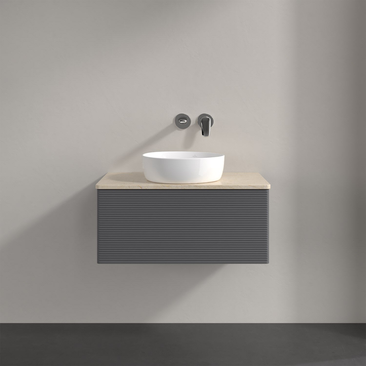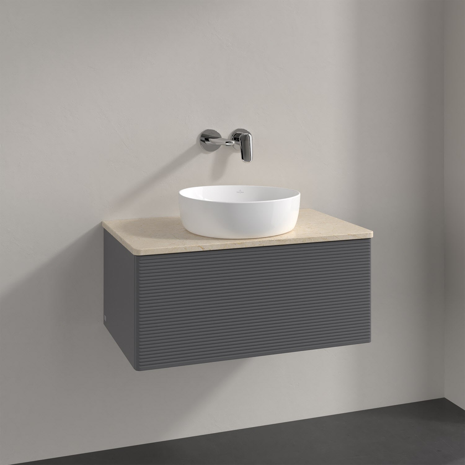 Villeroy & Boch Antao Waschbeckenunterschrank, 80 x 36 cm, 1 Auszug mit LED-Licht, Front mit Struktur, ohne Hahnloch