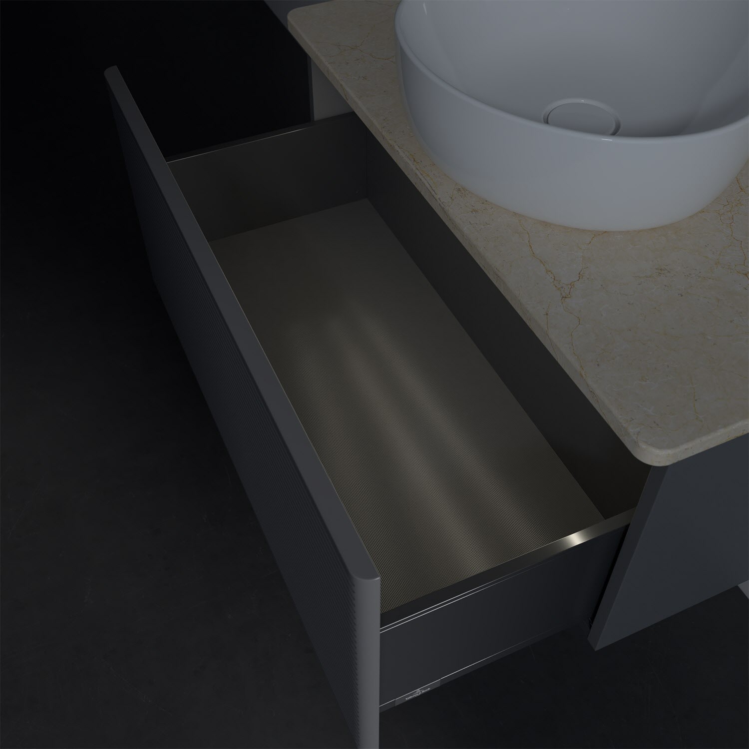 - kein Umfallen oder Verrutschen von Pflegeprodukten in den Schubladen dank rutschhemmendem Boden