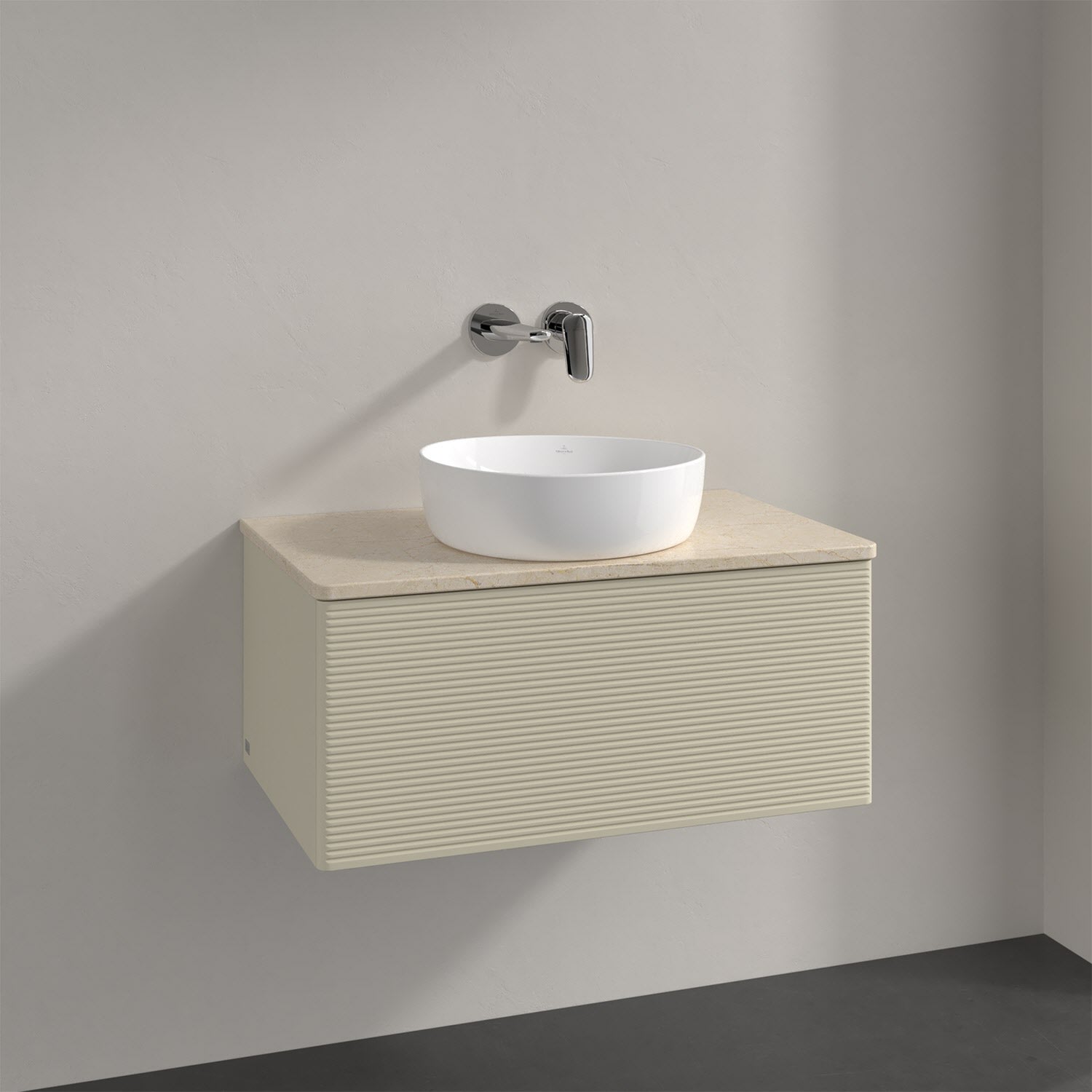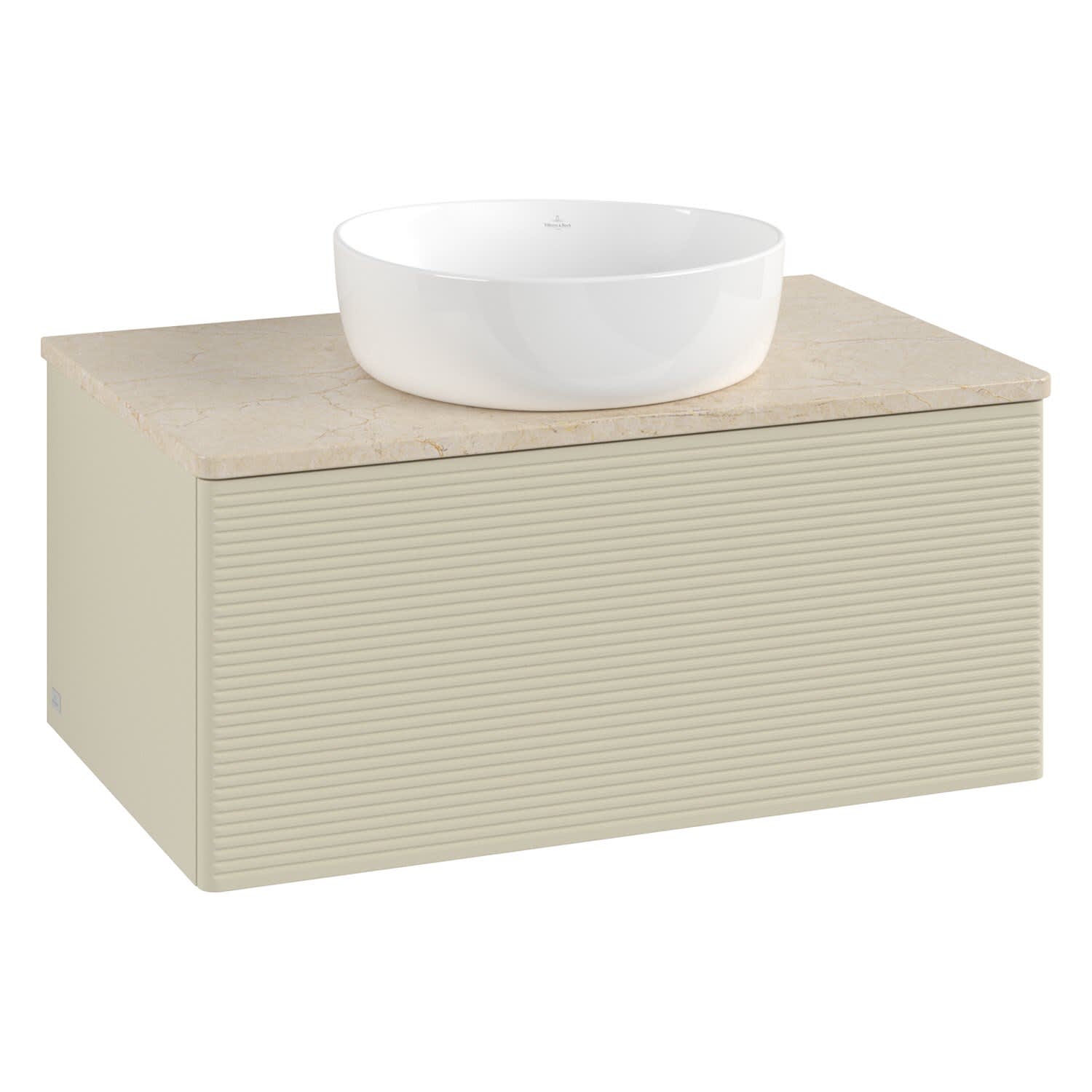 Villeroy & Boch Antao Waschbeckenunterschrank, 80 x 36 cm, 1 Auszug mit LED-Licht, Front mit Struktur, ohne Hahnloch