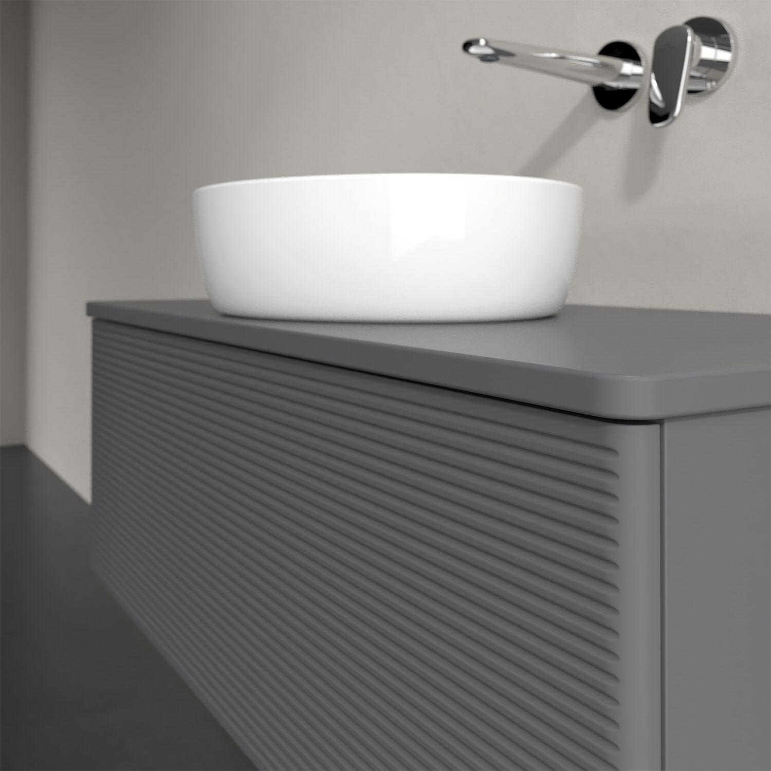 Für diesen Waschbeckenunterschrank stehen Ihnen Aufsatzwaschtische aus verschiedenen Serien zur Verfügung (siehe "Passliste" unter Downloads). Ein ausgewähltes Beispiel finden Sie im Zubehör. Den Waschtisch bitte separat mitbestellen.