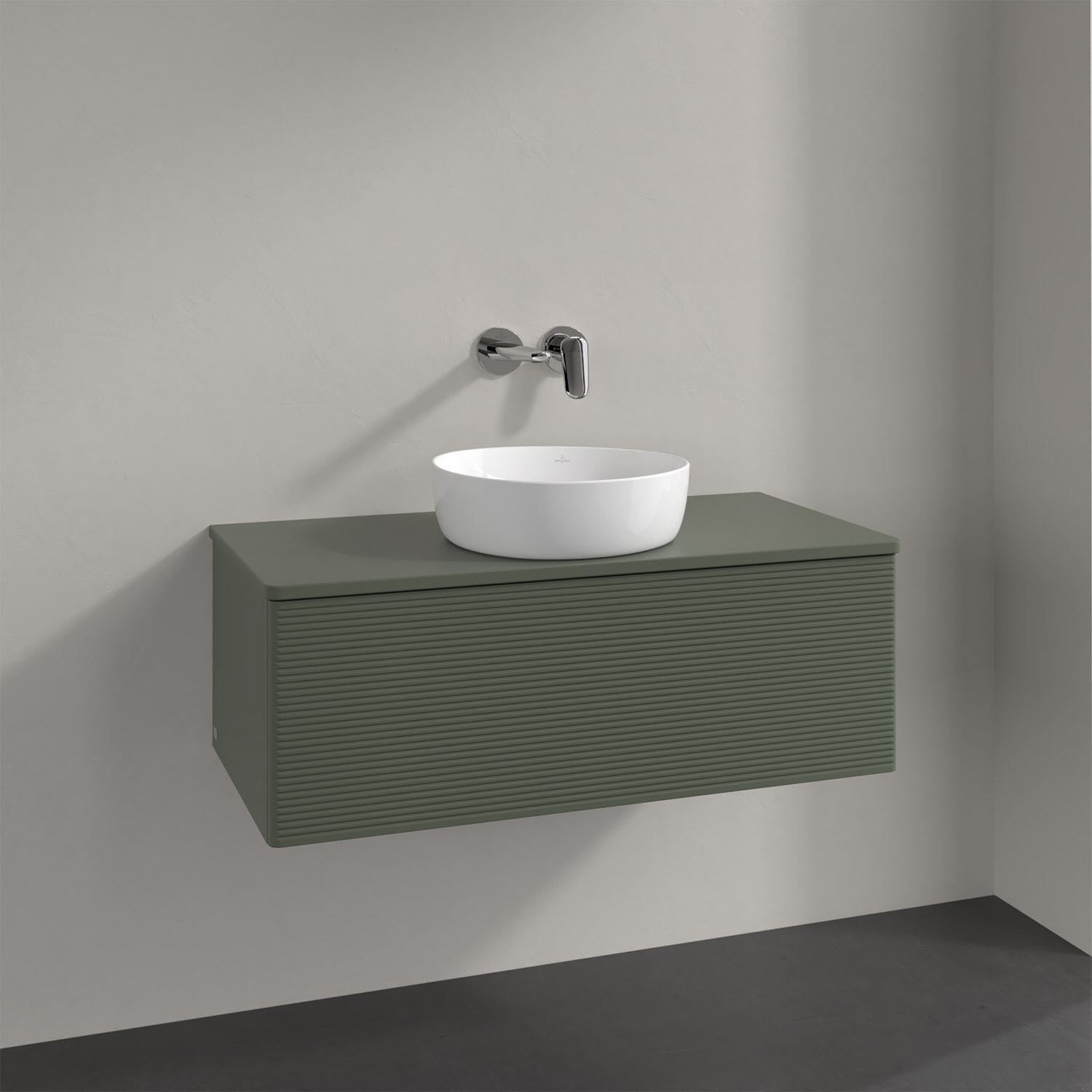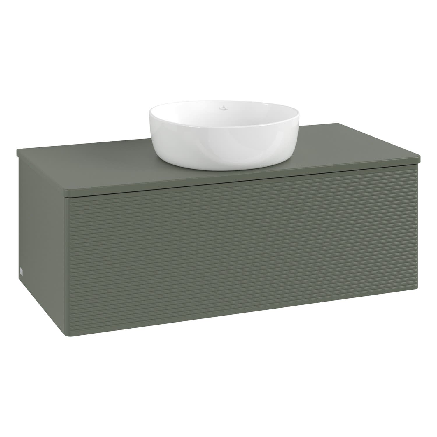 Villeroy & Boch Antao Waschbeckenunterschrank, 100 x 36 cm, 1 Auszug mit LED-Licht, Front mit Struktur, ohne Hahnloch