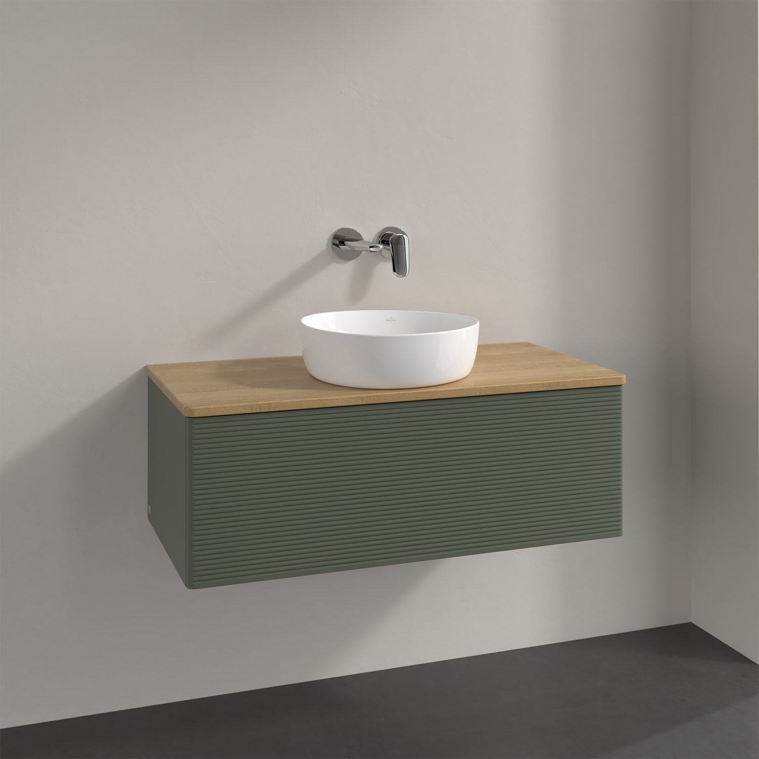 Villeroy & Boch Antao Waschbeckenunterschrank, 100 x 36 cm, 1 Auszug mit LED-Licht, Front mit Struktur, ohne Hahnloch