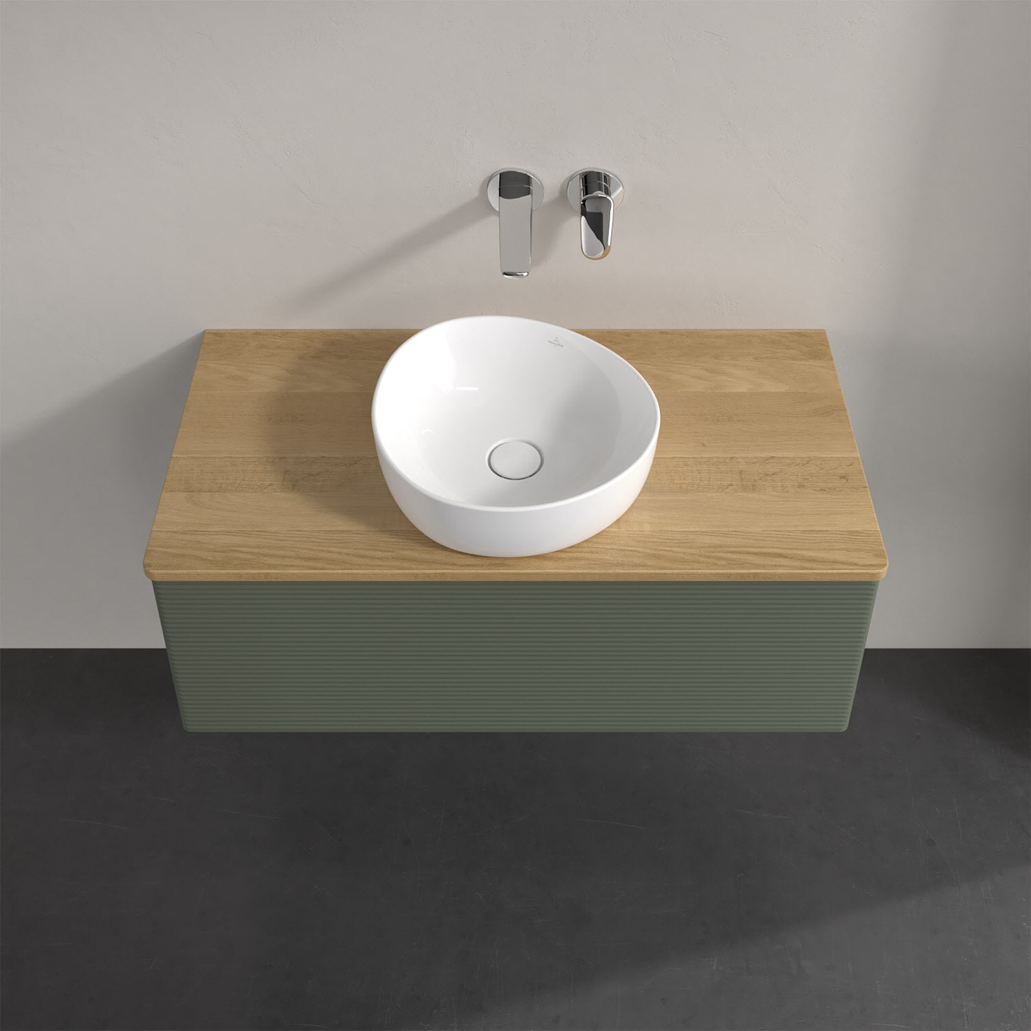Für diesen Waschbeckenunterschrank stehen Ihnen Aufsatzwaschtische aus verschiedenen Serien zur Verfügung (siehe "Passliste" unter Downloads). Ein ausgewähltes Beispiel finden Sie im Zubehör. Den Waschtisch bitte separat mitbestellen.