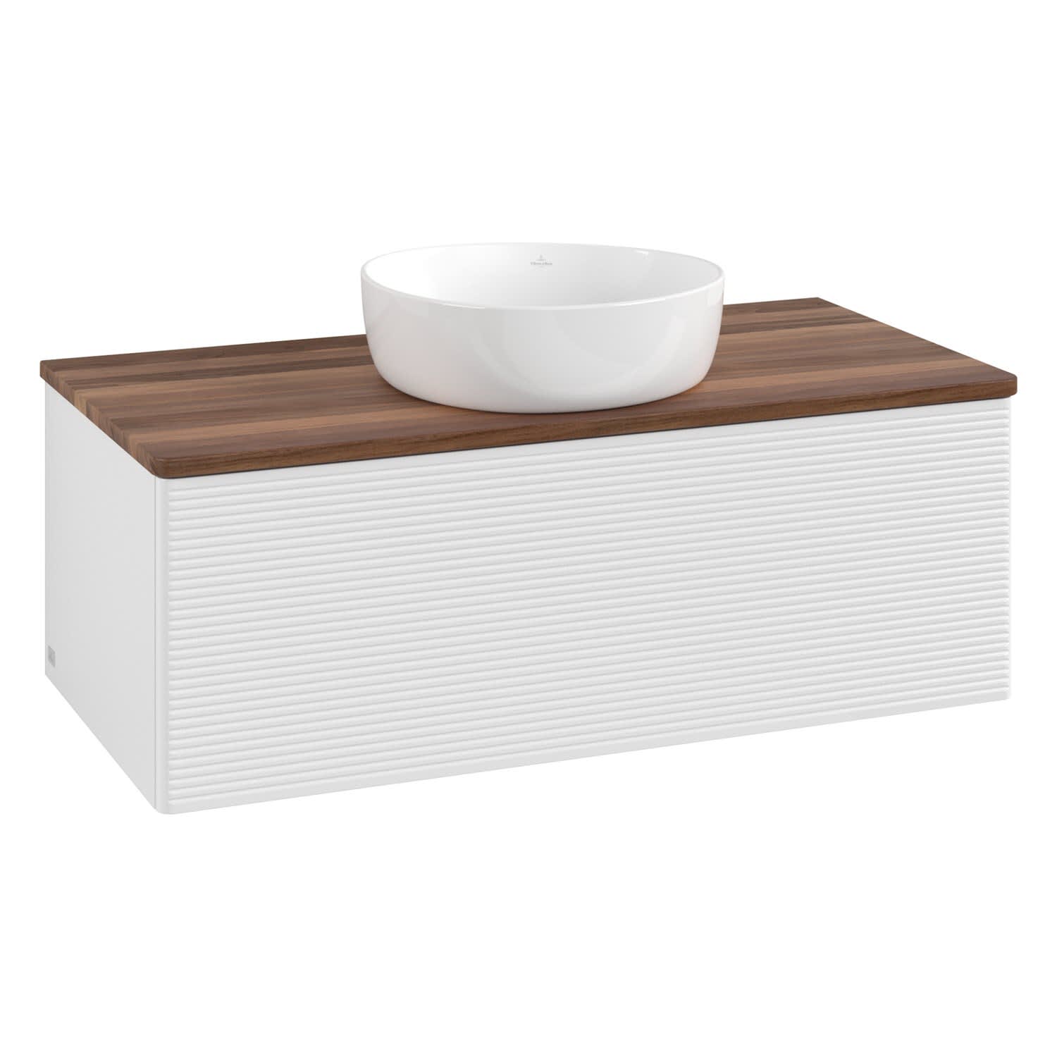 Villeroy & Boch Antao Waschbeckenunterschrank, 100 x 36 cm, 1 Auszug mit LED-Licht, Front mit Struktur, ohne Hahnloch