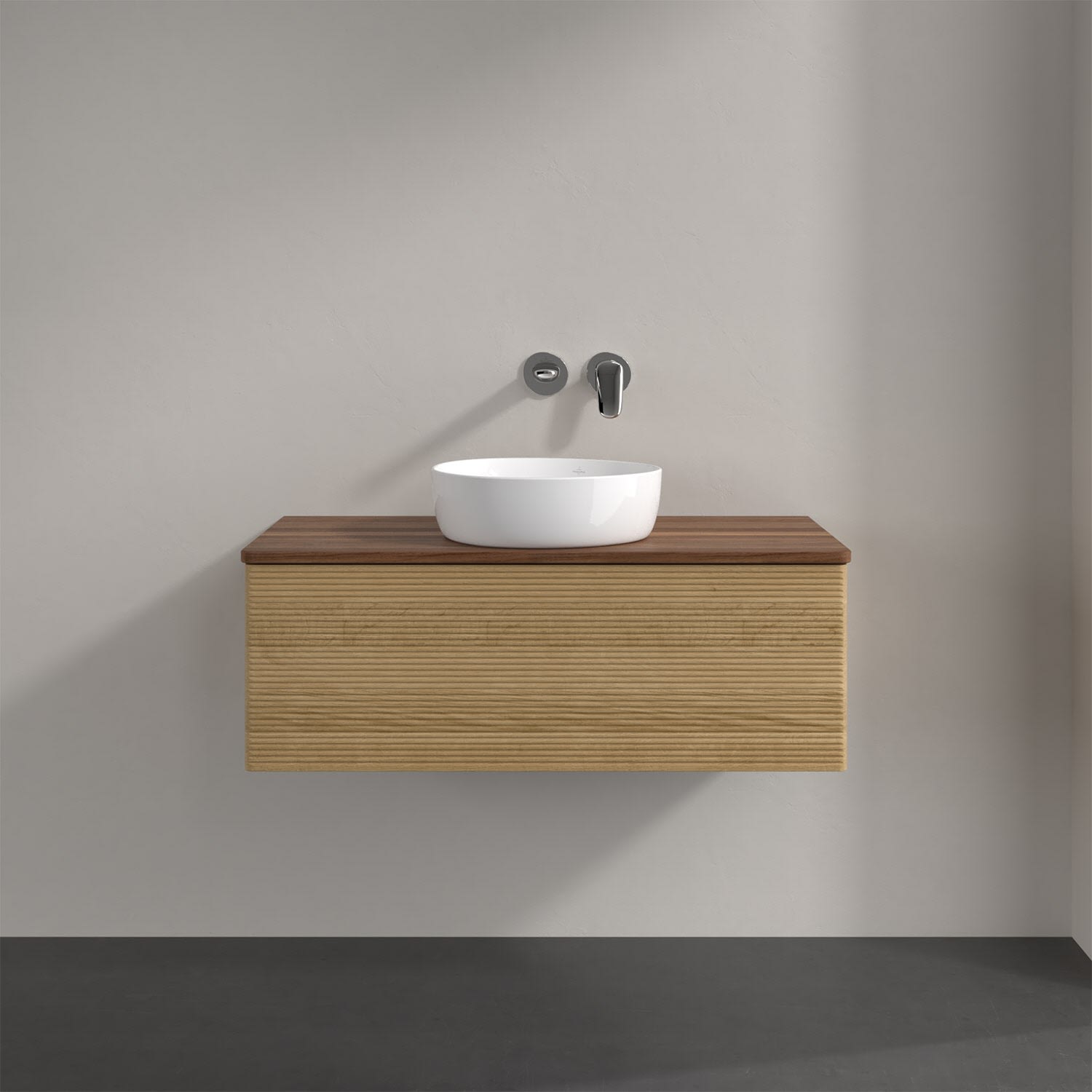 Villeroy & Boch Antao Waschbeckenunterschrank, 100 x 36 cm, 1 Auszug mit LED-Licht, Front mit Struktur, ohne Hahnloch