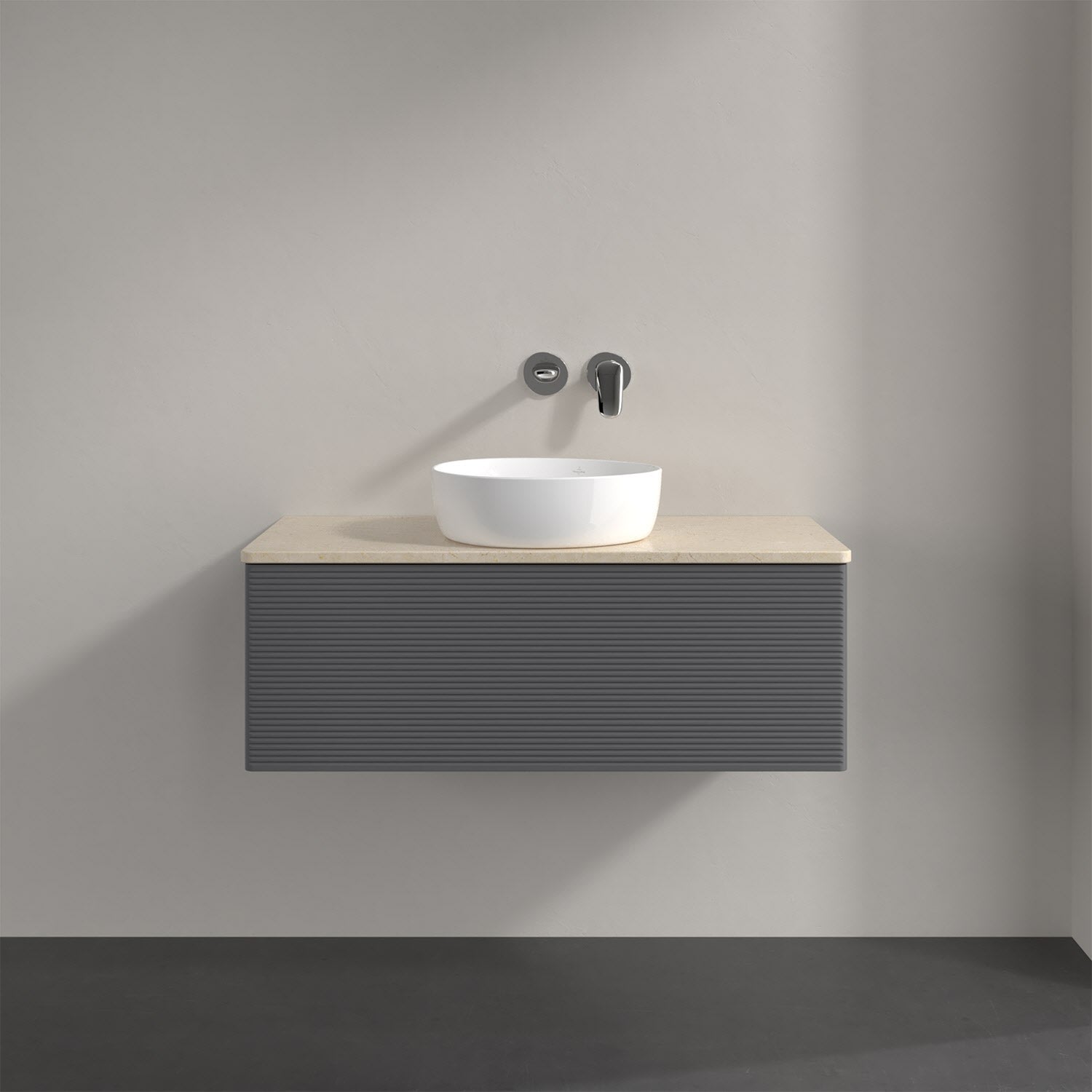 Villeroy & Boch Antao Waschbeckenunterschrank, 100 x 36 cm, 1 Auszug mit LED-Licht, Front mit Struktur, ohne Hahnloch
