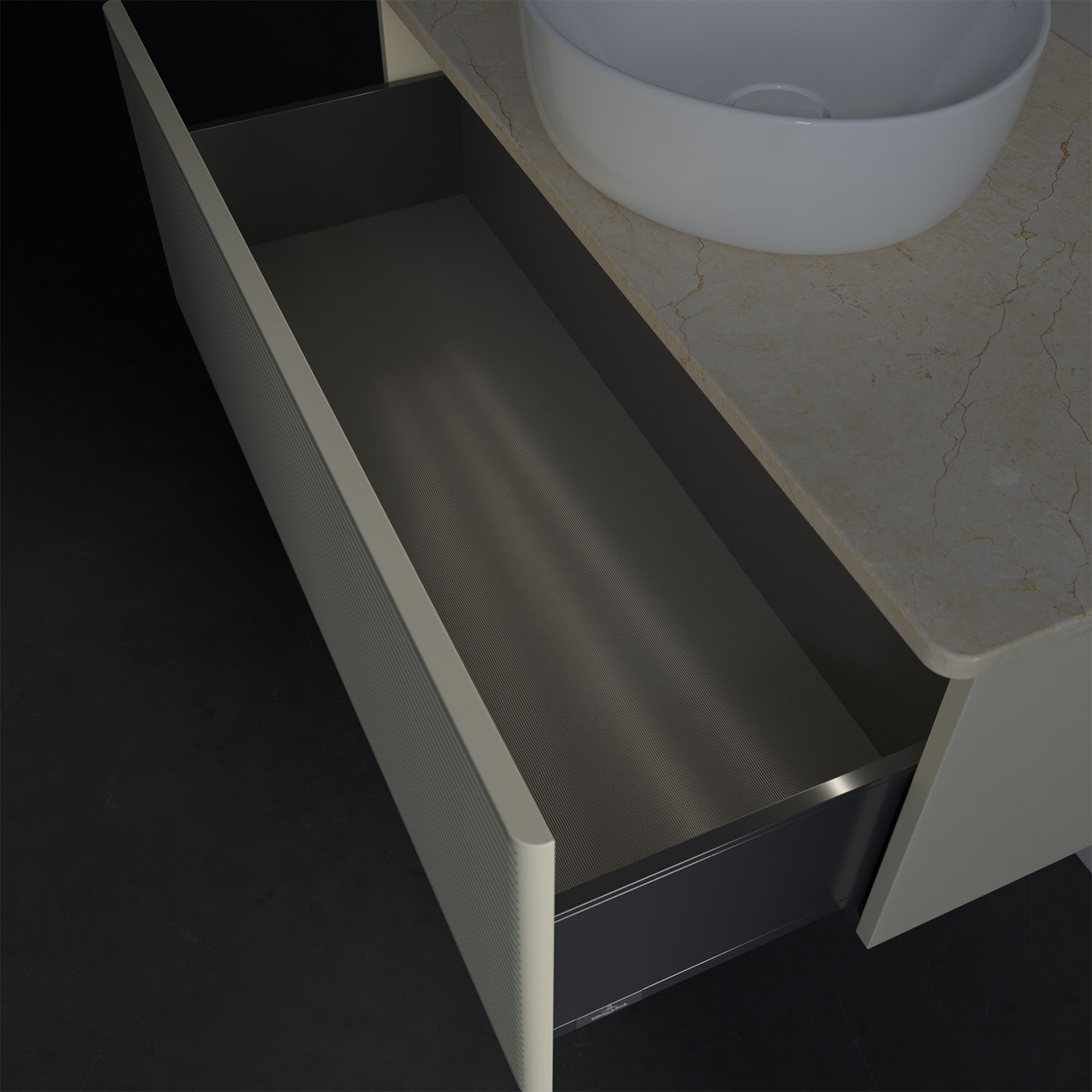 - kein Umfallen oder Verrutschen von Pflegeprodukten in den Schubladen dank rutschhemmendem Boden