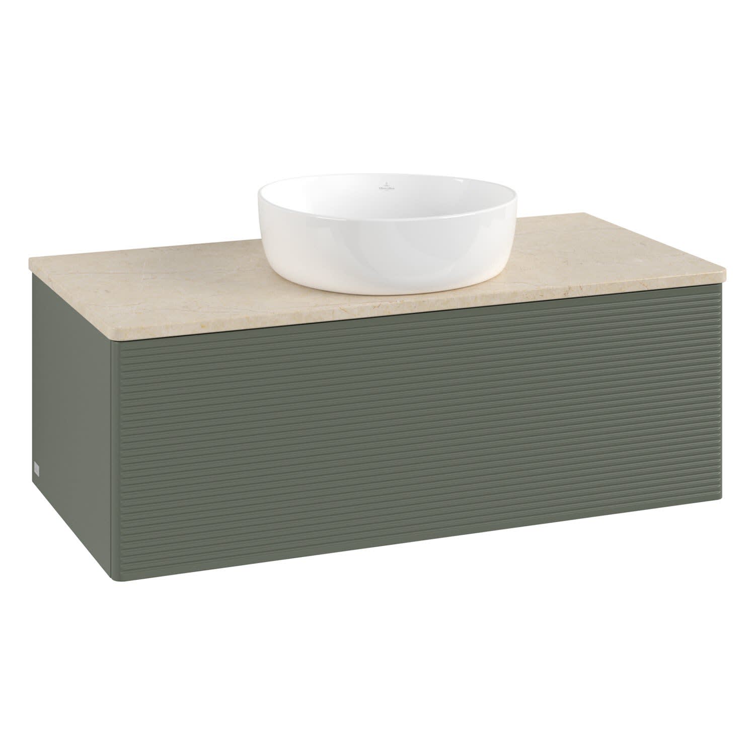 Villeroy & Boch Antao Waschbeckenunterschrank, 100 x 36 cm, 1 Auszug mit LED-Licht, Front mit Struktur, ohne Hahnloch