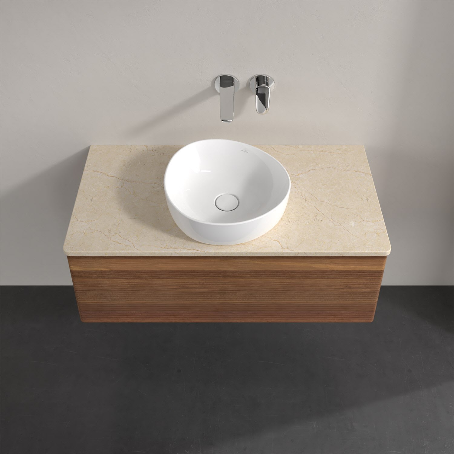 Für diesen Waschbeckenunterschrank stehen Ihnen Aufsatzwaschtische aus verschiedenen Serien zur Verfügung (siehe "Passliste" unter Downloads). Ein ausgewähltes Beispiel finden Sie im Zubehör. Den Waschtisch bitte separat mitbestellen.