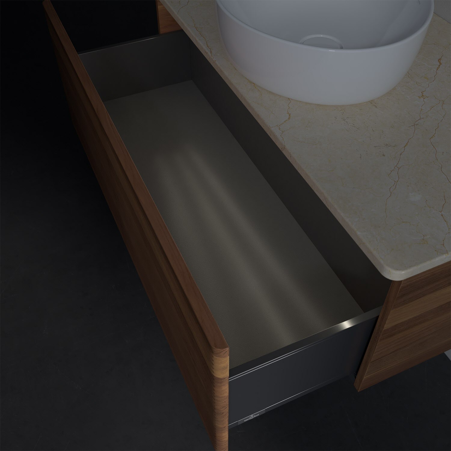 - kein Umfallen oder Verrutschen von Pflegeprodukten in den Schubladen dank rutschhemmendem Boden