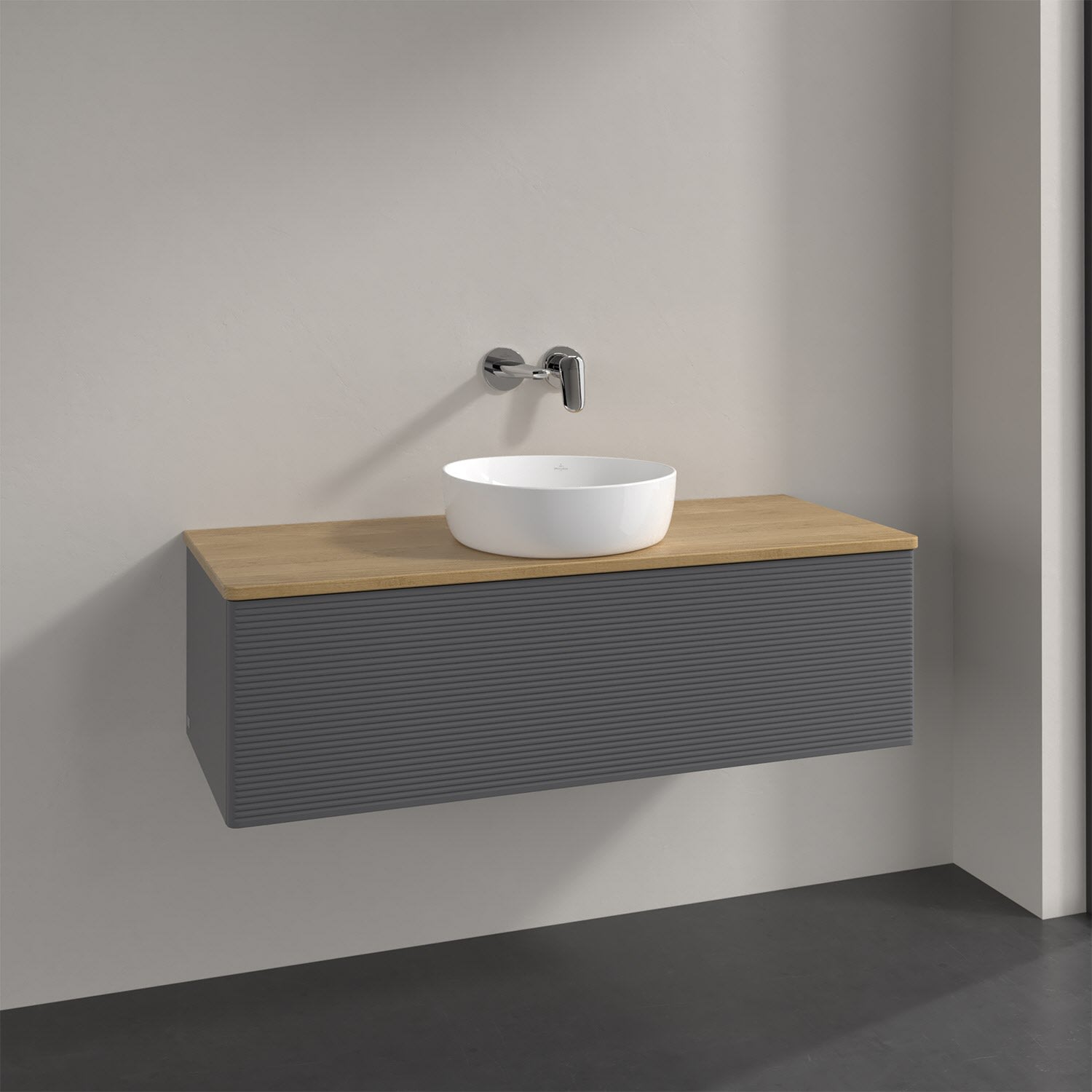 Villeroy & Boch Antao Waschbeckenunterschrank, 120 x 36 cm, 1 Auszug mit LED-Licht, Front mit Struktur, ohne Hahnloch, für Waschtisch mittig
