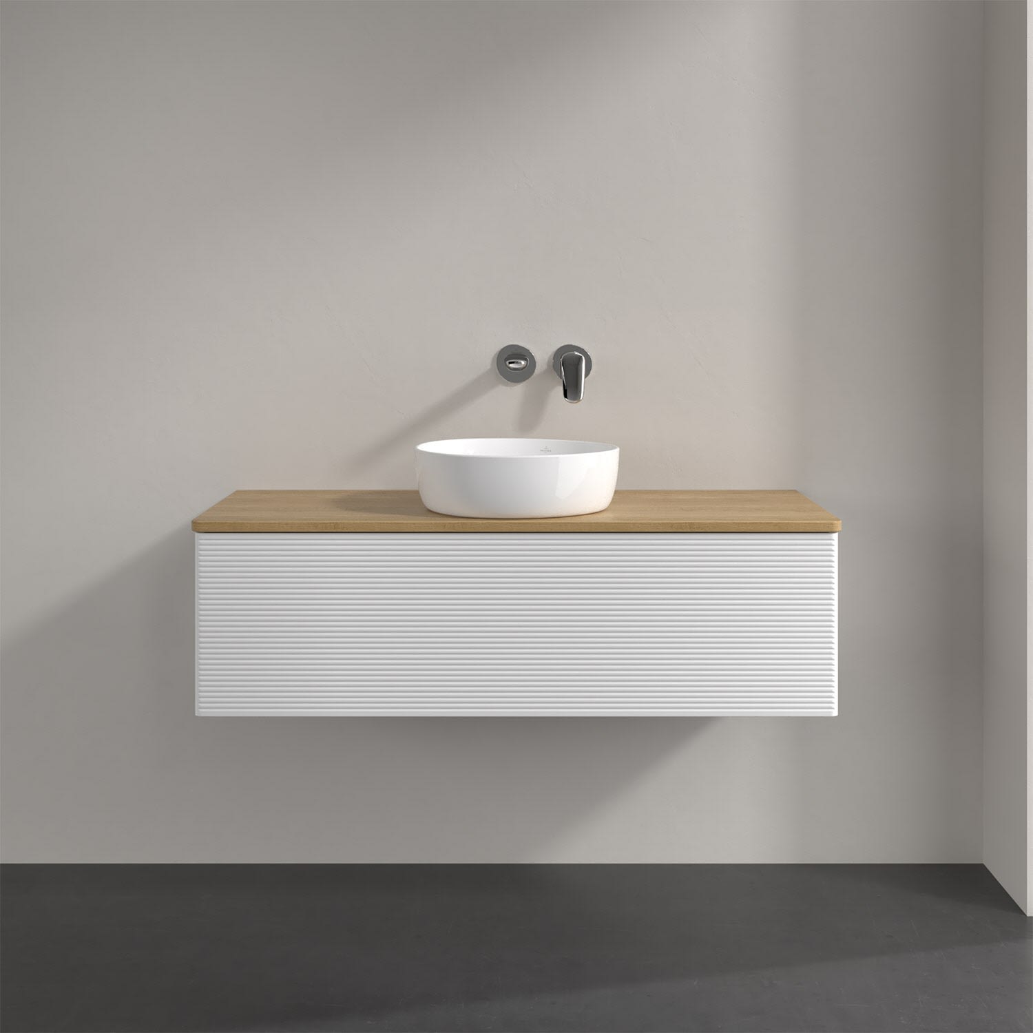 Villeroy & Boch Antao Waschbeckenunterschrank, 120 x 36 cm, 1 Auszug mit LED-Licht, Front mit Struktur, ohne Hahnloch, für Waschtisch mittig