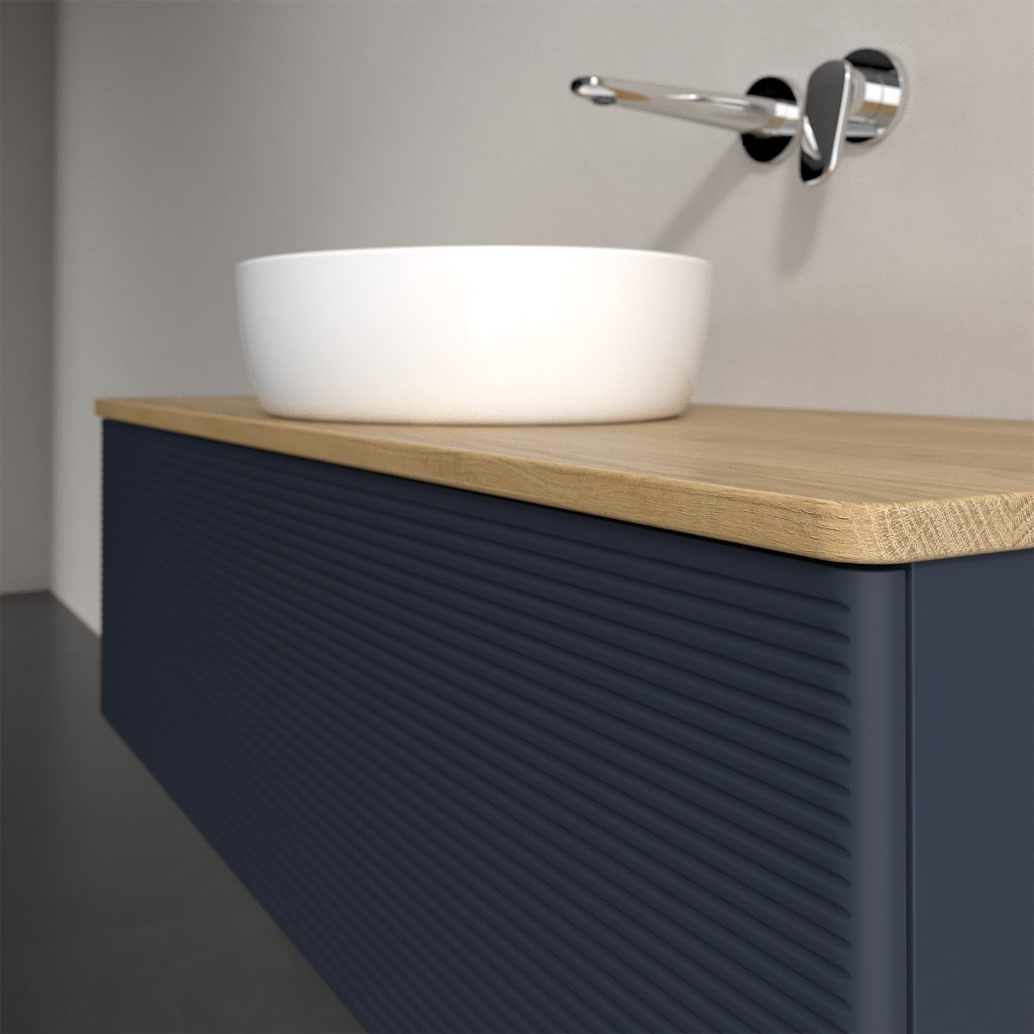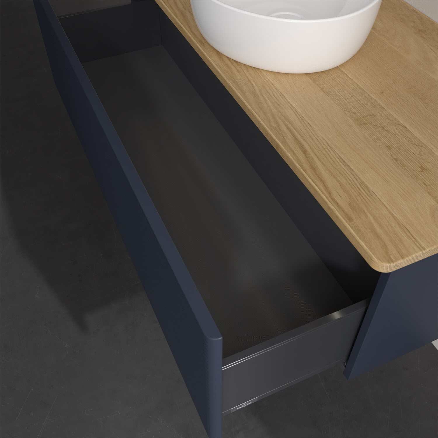 Der wandhängende Antao Waschtischunterschrank von Villeroy & Boch bietet nicht nur jede Menge Stauraum – er ist dank seines naturinspirierten Designs mit seinen abgerundeten Kanten auch noch besonders stilvoll und schafft eine gemütliche Atmosphäre im Badezimmer. Auf der Waschtischplatte bietet sich rechts und links neben dem Waschtisch viel Platz für Zahnbürstenbecher oder Seifenspender. Ein extra hoher Auszug bietet viel Platz, um alles Notwendige zu verstauen und Ordnung zu halten. Öffnen lässt er sich durch leichten Druck auf die strukturierte Front. Dabei aktiviert sich übrigens die Auszugsbeleuchtung in angenehmem Warmweiß. Dank Vollauszug hat man immer alles im Blick und der Antirutschboden verhindert ein Umfallen oder Verrutschen der Gegenstände. Einfach clever! Für eine besonders leichte Pflege sorgt die mehrschichtig deckend lackierte Oberfläche. Bei der Ausführung in Massivholz wird dank des verarbeiteten Massivholzes jedes Möbel zu einem Unikat, das sich durch das lebendige Naturmaterial durch seine einzigartige Struktur und Maserung auszeichnet.