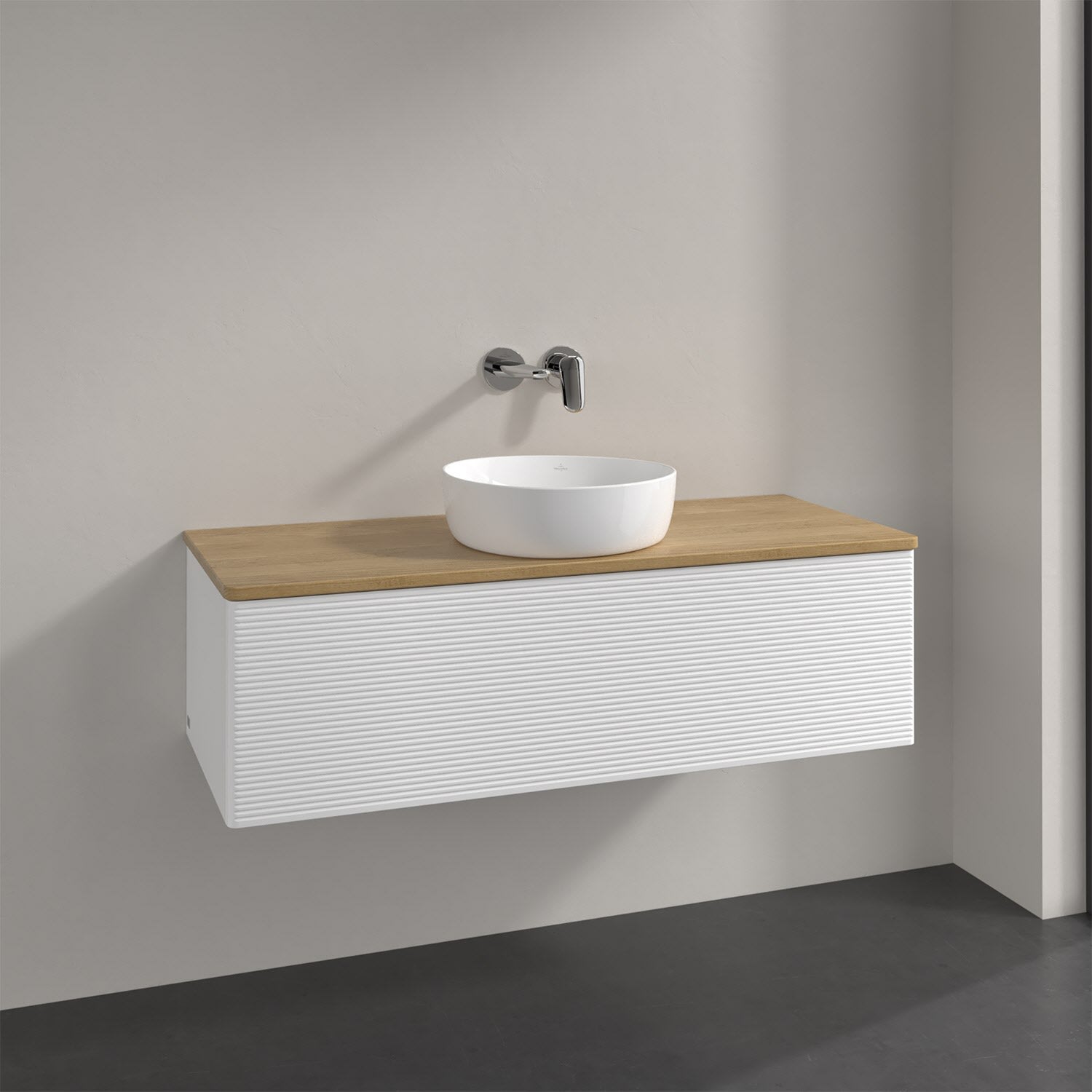 Villeroy & Boch Antao Waschbeckenunterschrank, 120 x 36 cm, 1 Auszug mit LED-Licht, Front mit Struktur, ohne Hahnloch, für Waschtisch mittig