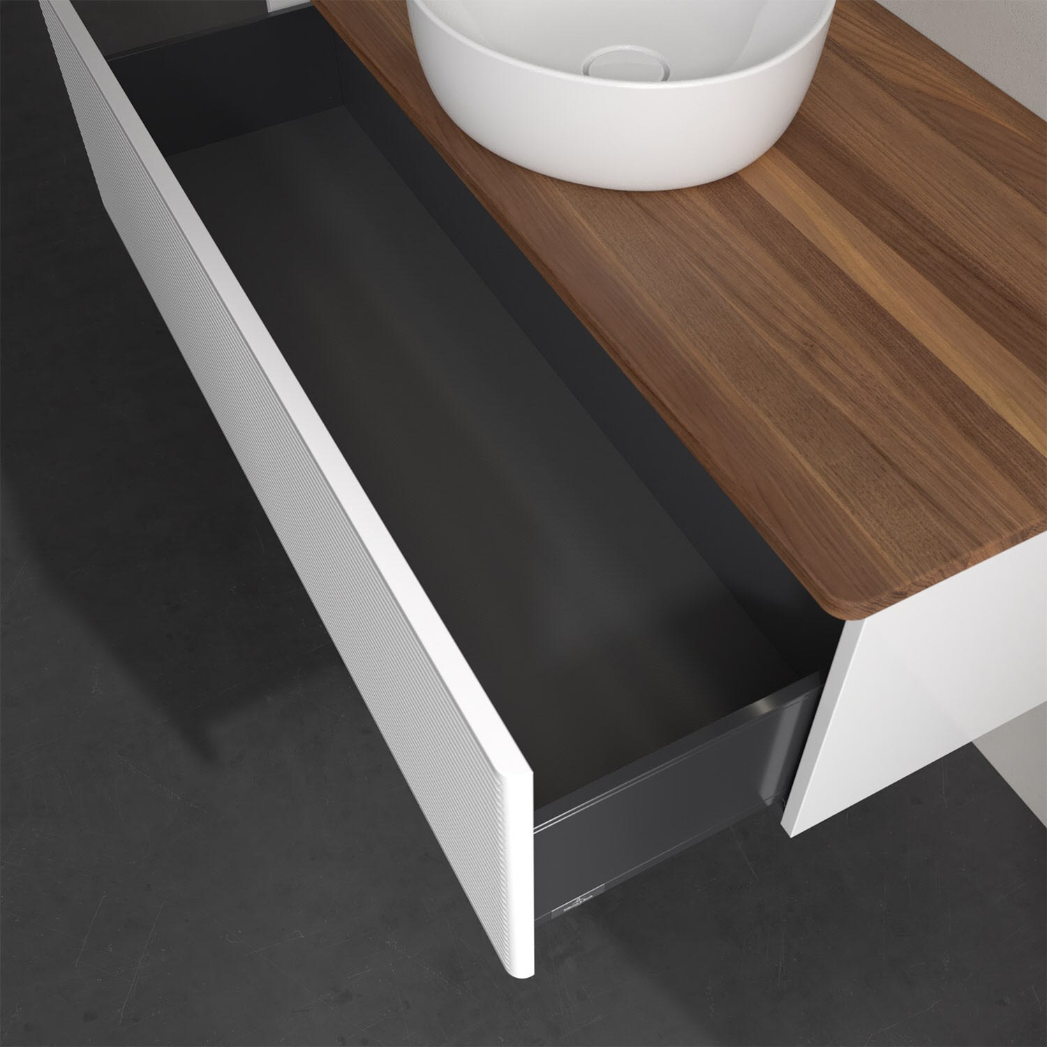 Villeroy & Boch Antao Waschbeckenunterschrank, 120 x 36 cm, 1 Auszug mit LED-Licht, Front mit Struktur, ohne Hahnloch, für Waschtisch mittig