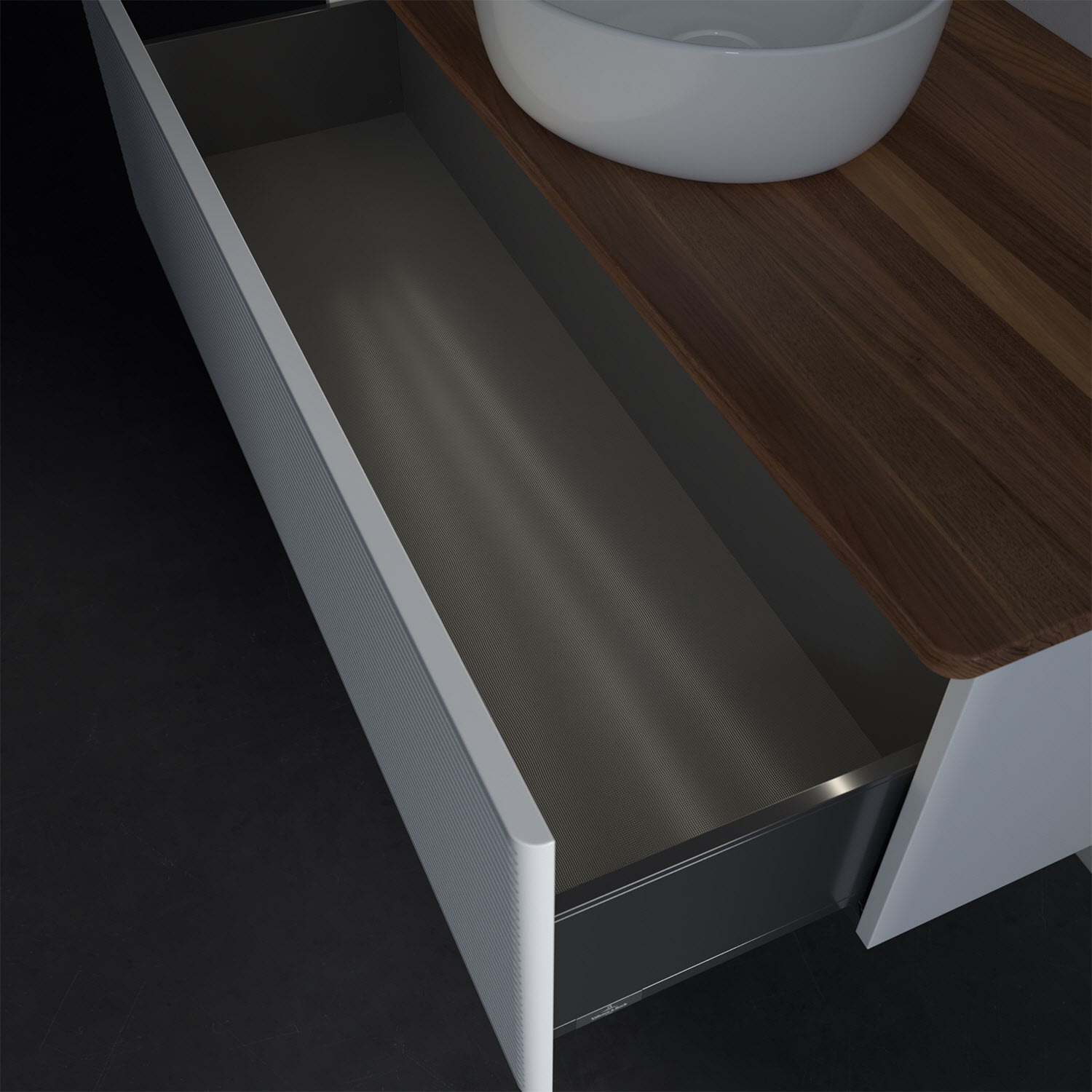 - kein Umfallen oder Verrutschen von Pflegeprodukten in den Schubladen dank rutschhemmendem Boden