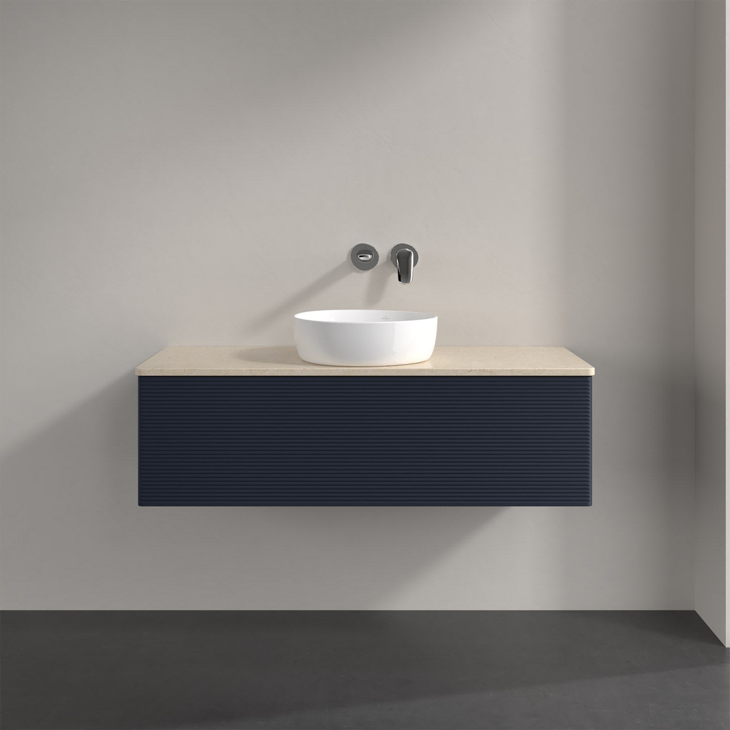 Villeroy & Boch Antao Waschbeckenunterschrank, 120 x 36 cm, 1 Auszug mit LED-Licht, Front mit Struktur, ohne Hahnloch, für Waschtisch mittig
