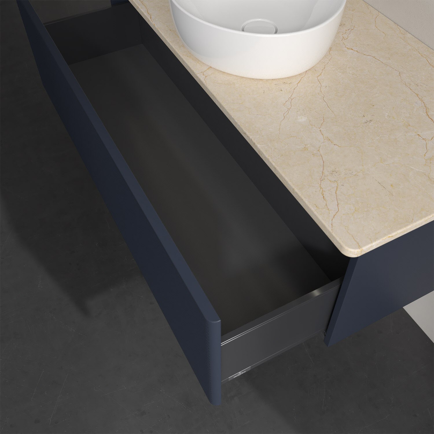 - kein Umfallen oder Verrutschen von Pflegeprodukten in den Schubladen dank rutschhemmendem Boden