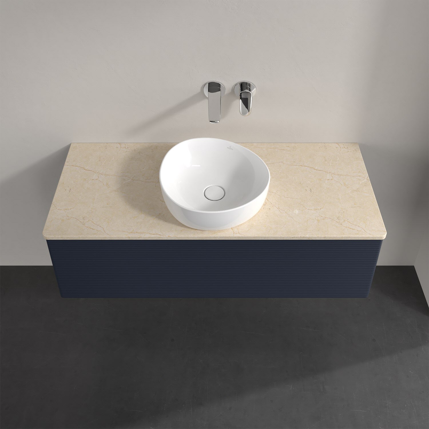 Für diesen Waschbeckenunterschrank stehen Ihnen Aufsatzwaschtische aus verschiedenen Serien zur Verfügung (siehe "Passliste" unter Downloads). Ein ausgewähltes Beispiel finden Sie im Zubehör. Den Waschtisch bitte separat mitbestellen.