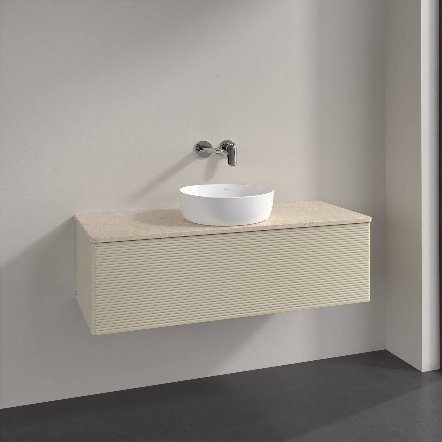 Villeroy & Boch Antao Waschbeckenunterschrank, 120 x 36 cm, 1 Auszug mit LED-Licht, Front mit Struktur, ohne Hahnloch, für Waschtisch mittig