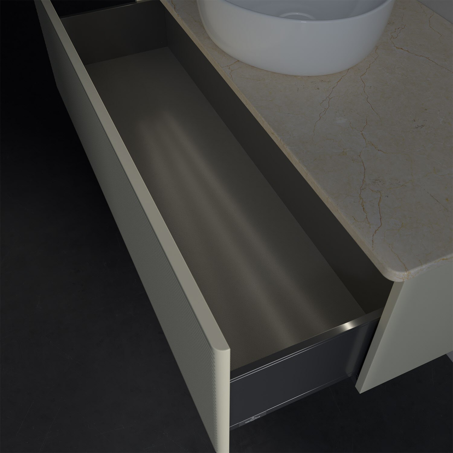 - kein Umfallen oder Verrutschen von Pflegeprodukten in den Schubladen dank rutschhemmendem Boden