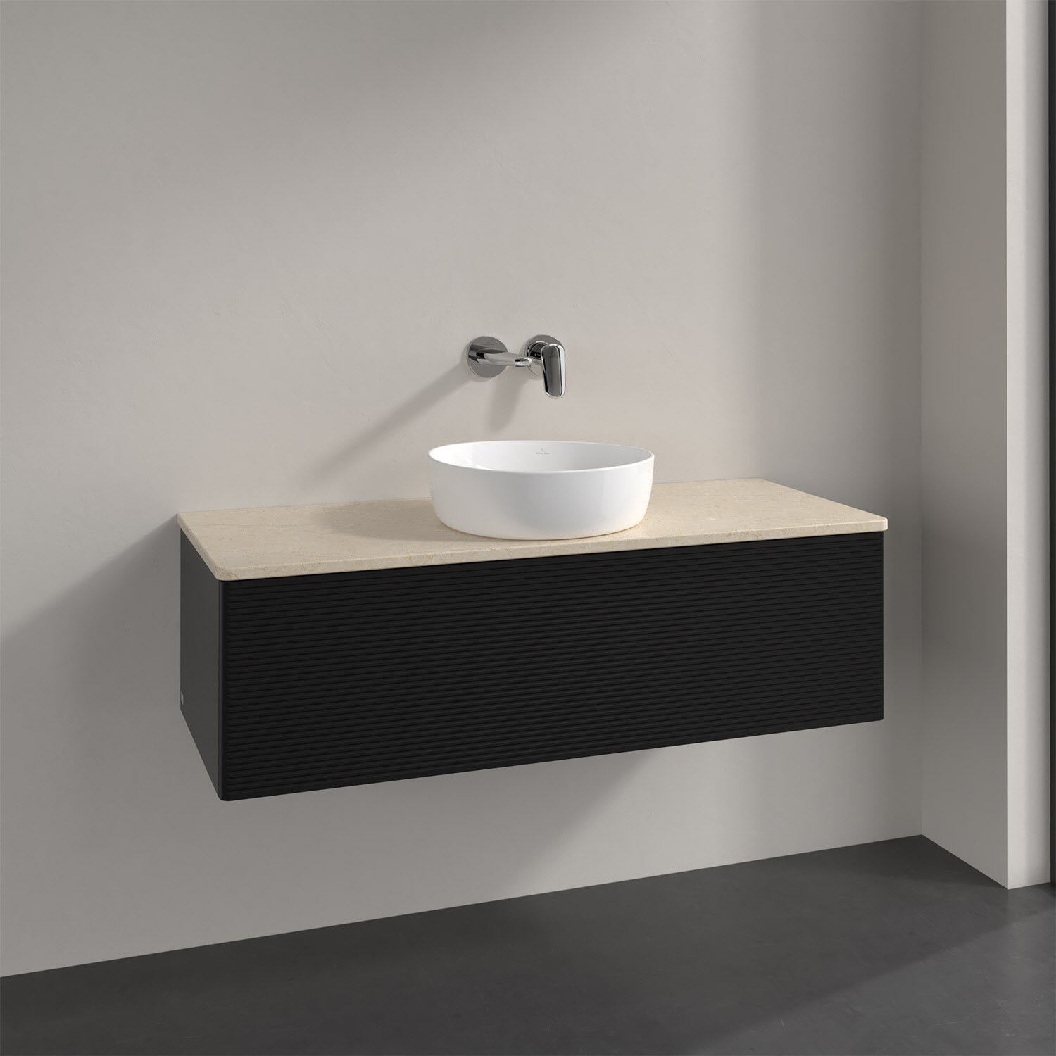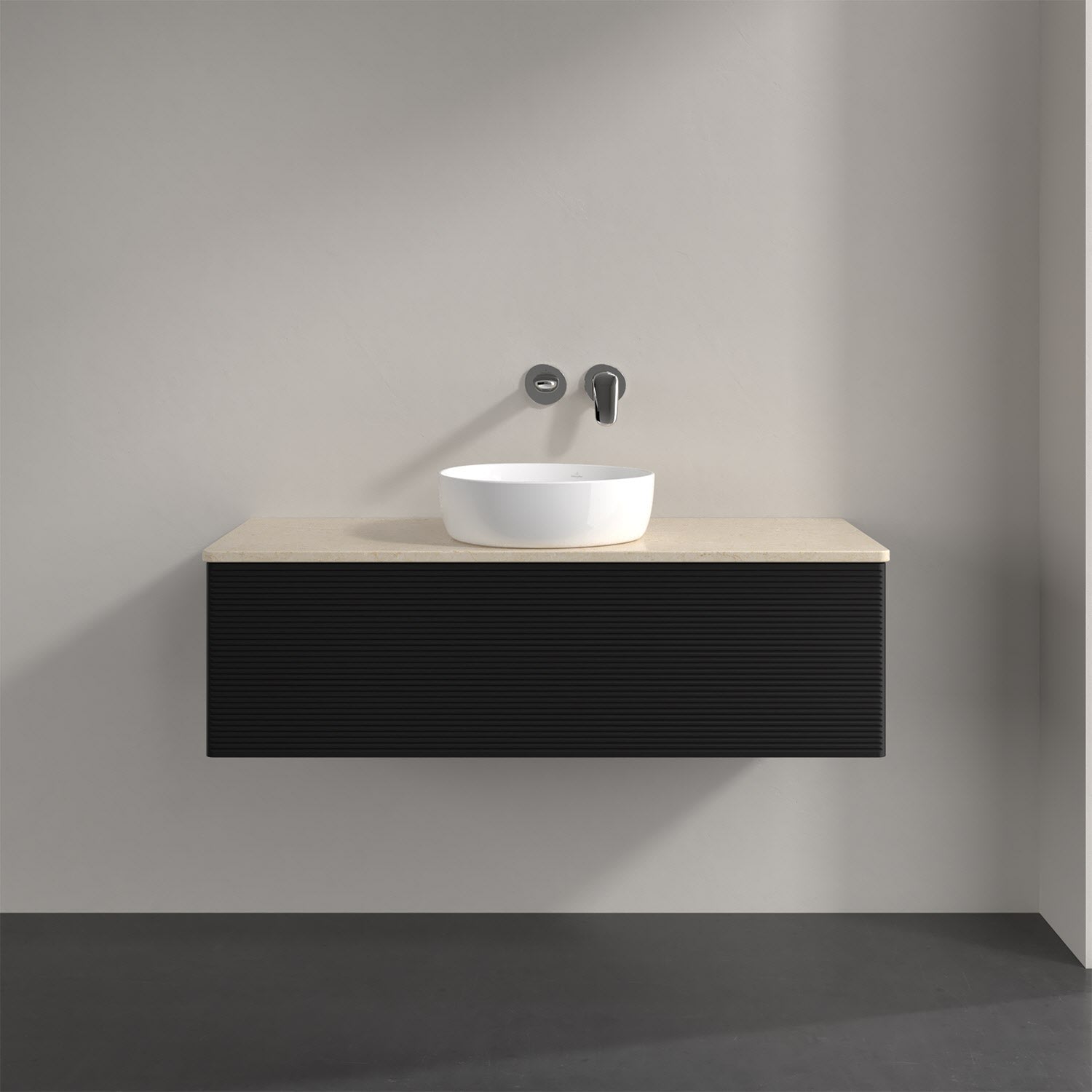 Villeroy & Boch Antao Waschbeckenunterschrank, 120 x 36 cm, 1 Auszug mit LED-Licht, Front mit Struktur, ohne Hahnloch, für Waschtisch mittig