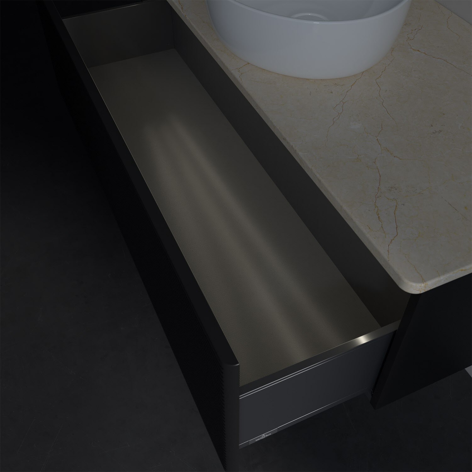 - kein Umfallen oder Verrutschen von Pflegeprodukten in den Schubladen dank rutschhemmendem Boden