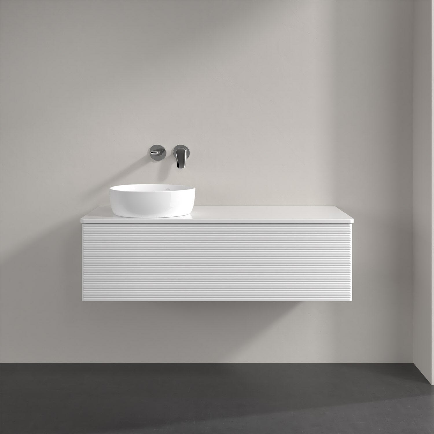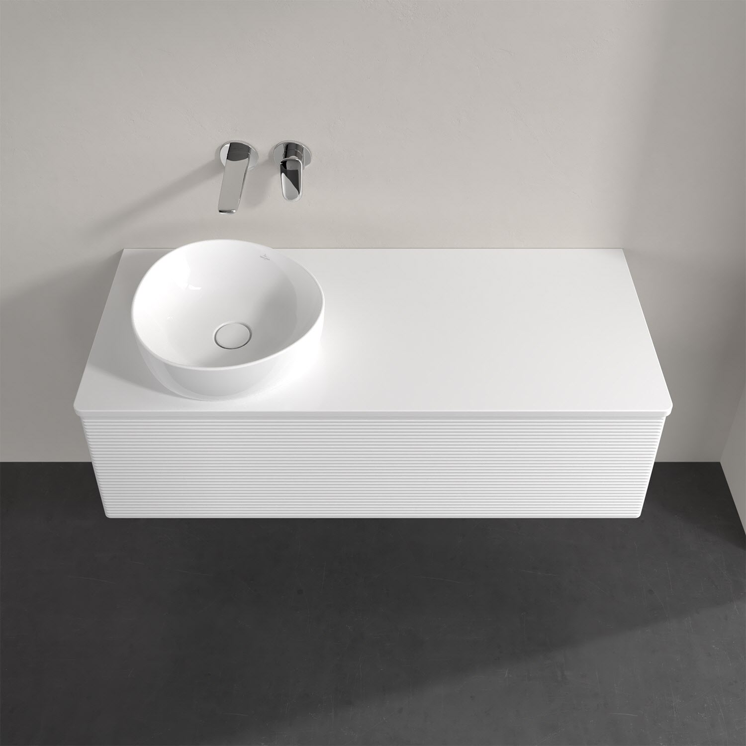 Villeroy & Boch Antao Waschbeckenunterschrank, 120 x 36 cm, 1 Auszug mit LED-Licht, Front mit Struktur, ohne Hahnloch, für Waschtisch links
