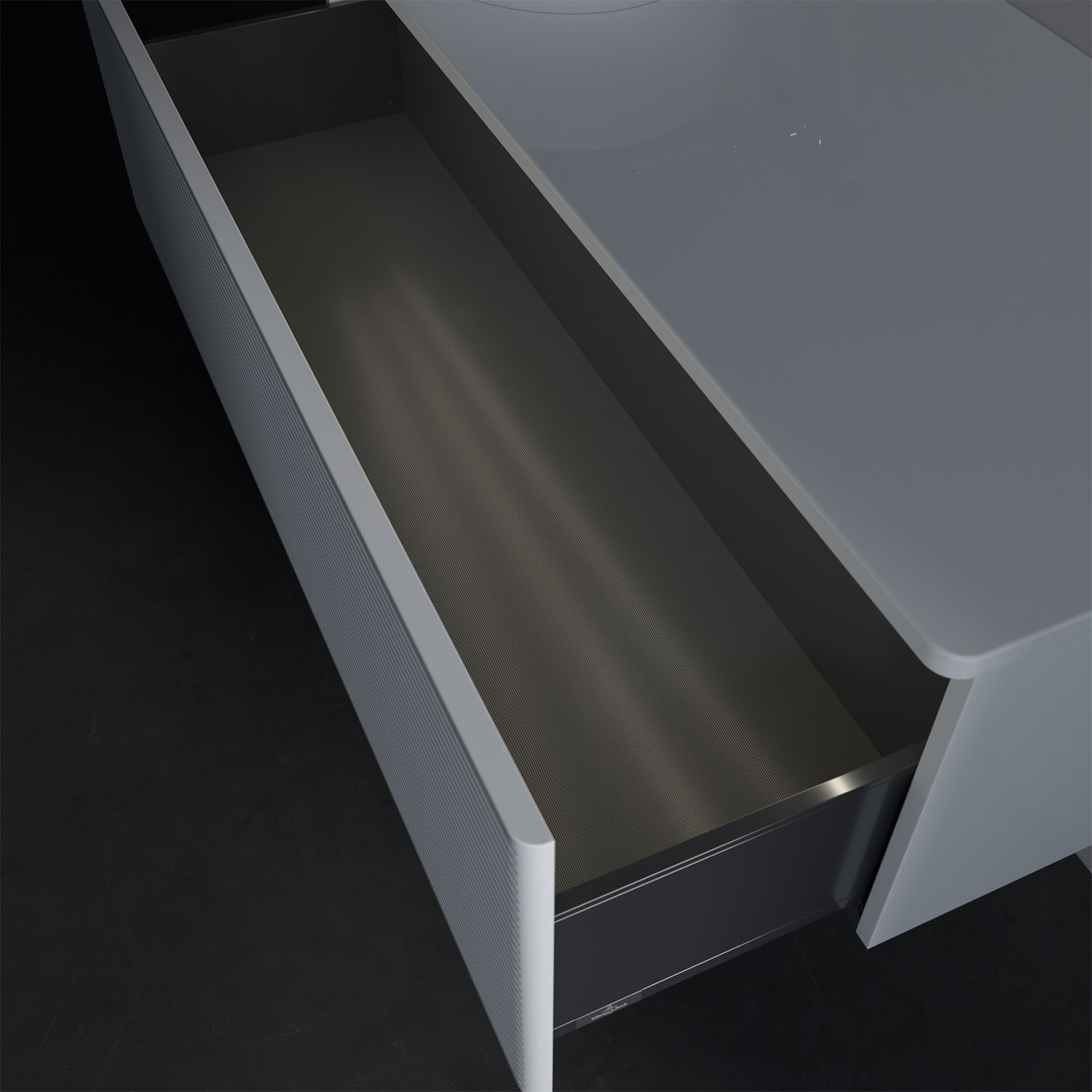 - kein Umfallen oder Verrutschen von Pflegeprodukten in den Schubladen dank rutschhemmendem Boden
