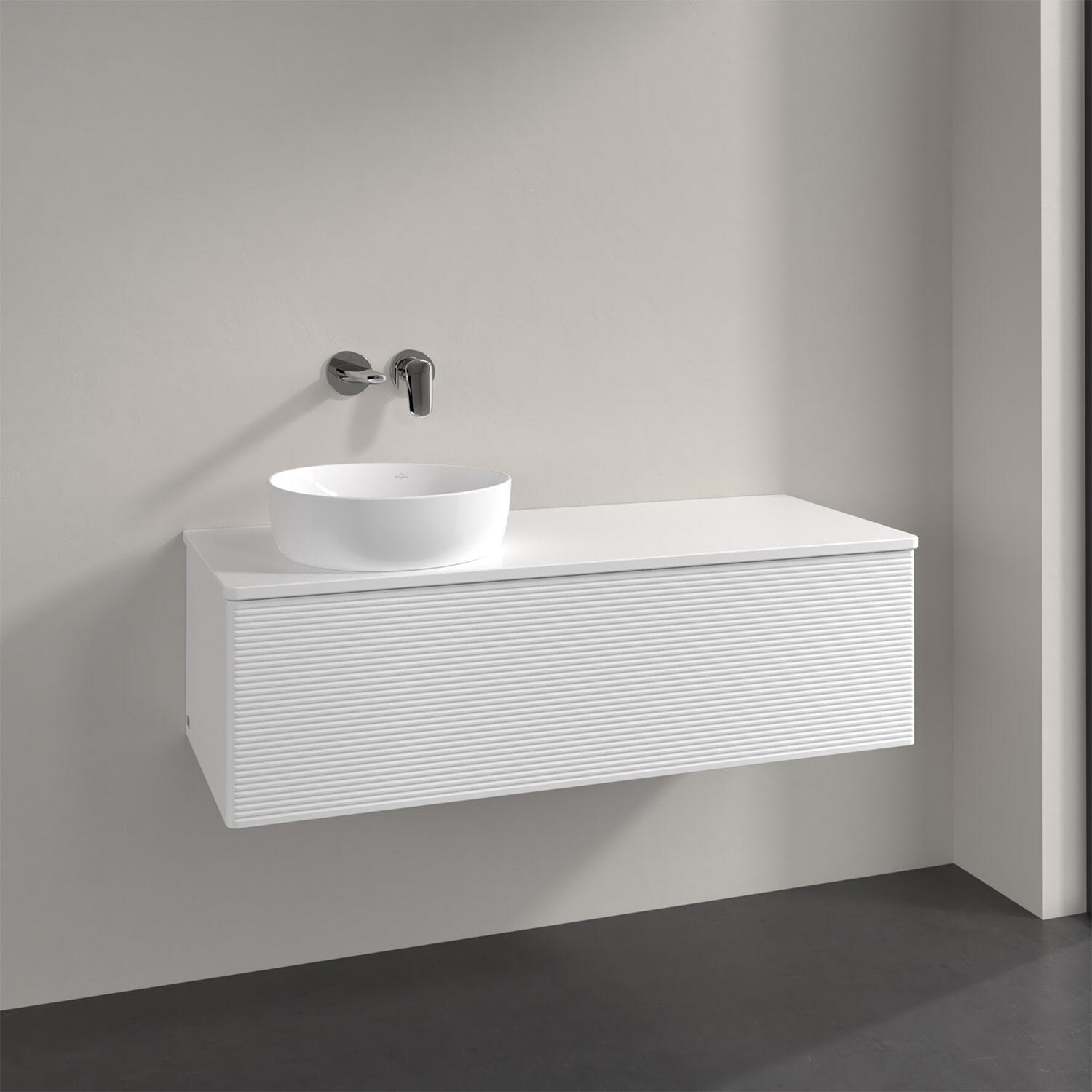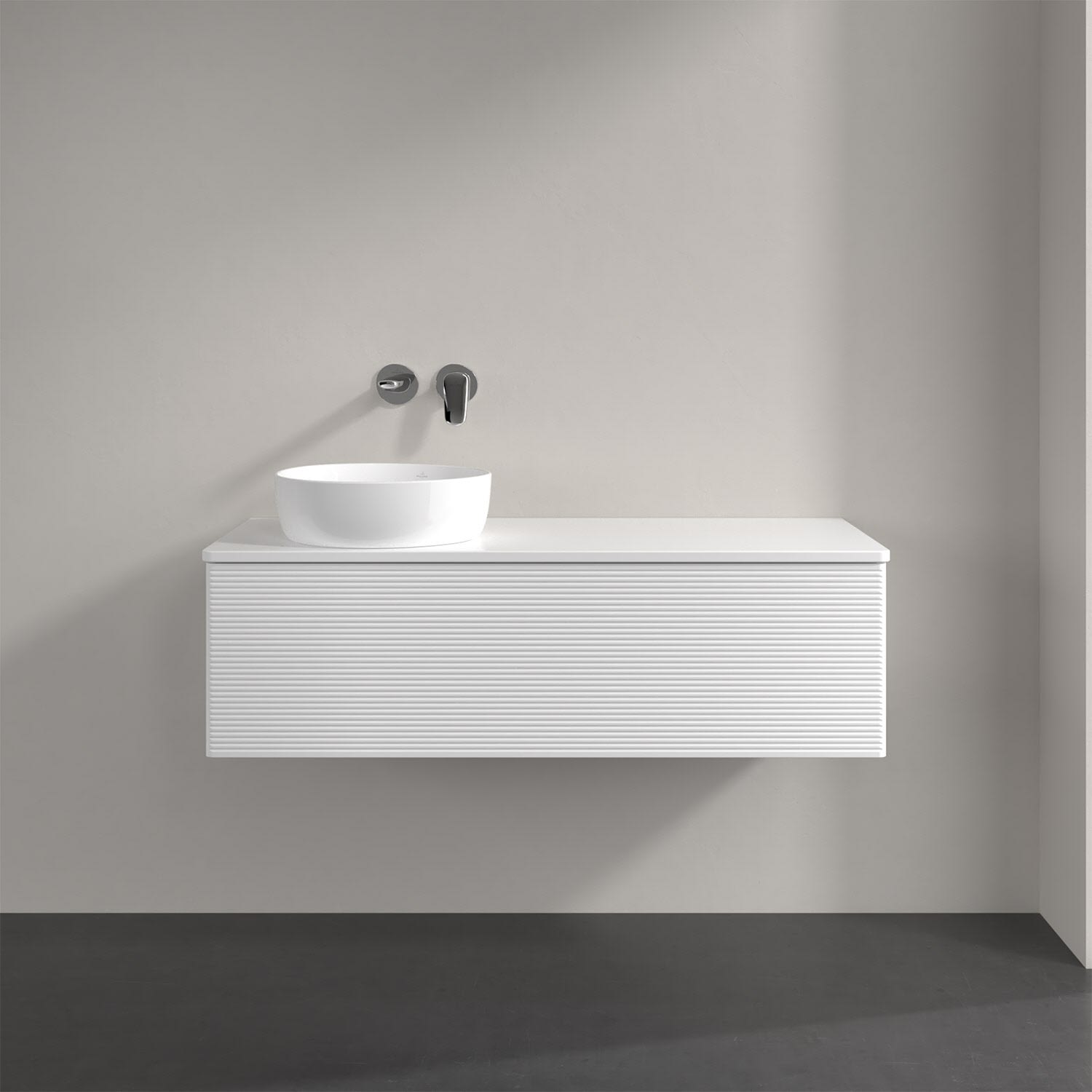 Villeroy & Boch Antao Waschbeckenunterschrank, 120 x 36 cm, 1 Auszug mit LED-Licht, Front mit Struktur, ohne Hahnloch, für Waschtisch links