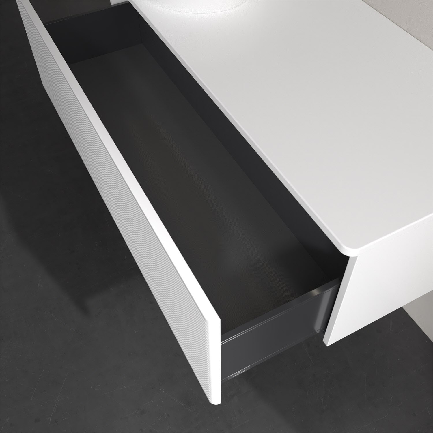- kein Umfallen oder Verrutschen von Pflegeprodukten in den Schubladen dank rutschhemmendem Boden