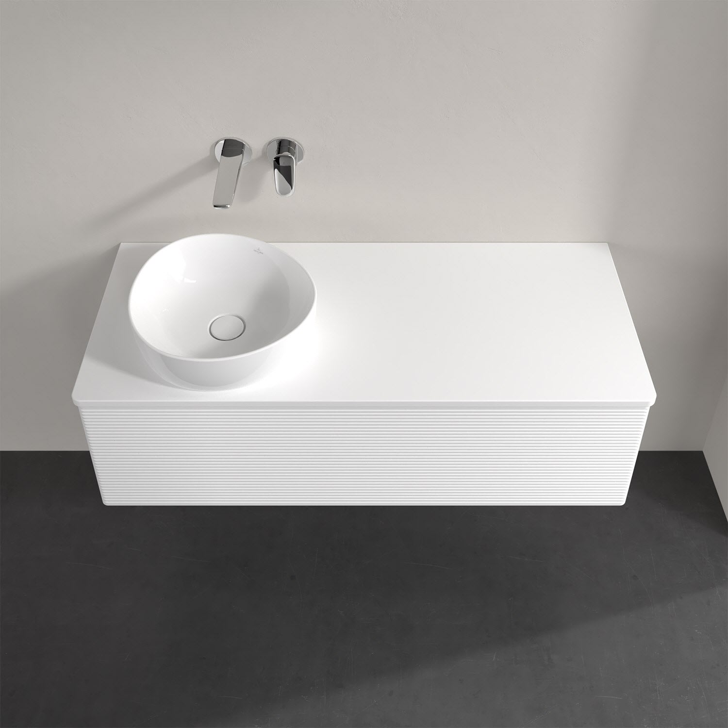 Für diesen Waschbeckenunterschrank stehen Ihnen Aufsatzwaschtische aus verschiedenen Serien zur Verfügung (siehe "Passliste" unter Downloads). Ein ausgewähltes Beispiel finden Sie im Zubehör. Den Waschtisch bitte separat mitbestellen.