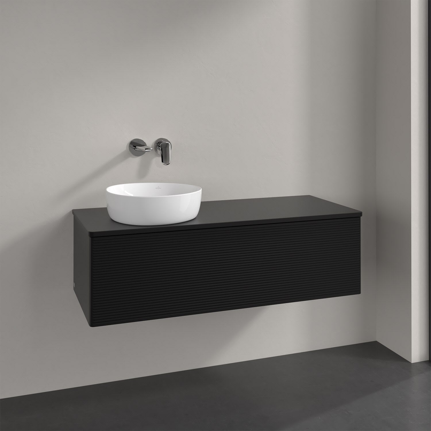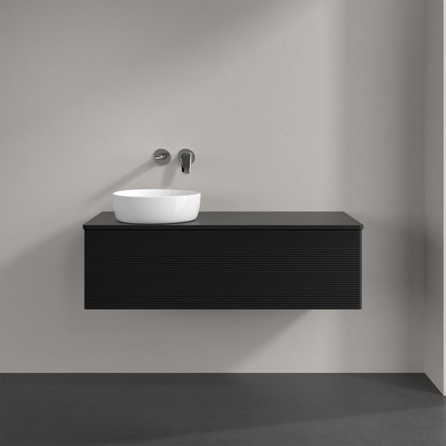 Villeroy & Boch Antao Waschbeckenunterschrank, 120 x 36 cm, 1 Auszug mit LED-Licht, Front mit Struktur, ohne Hahnloch, für Waschtisch links
