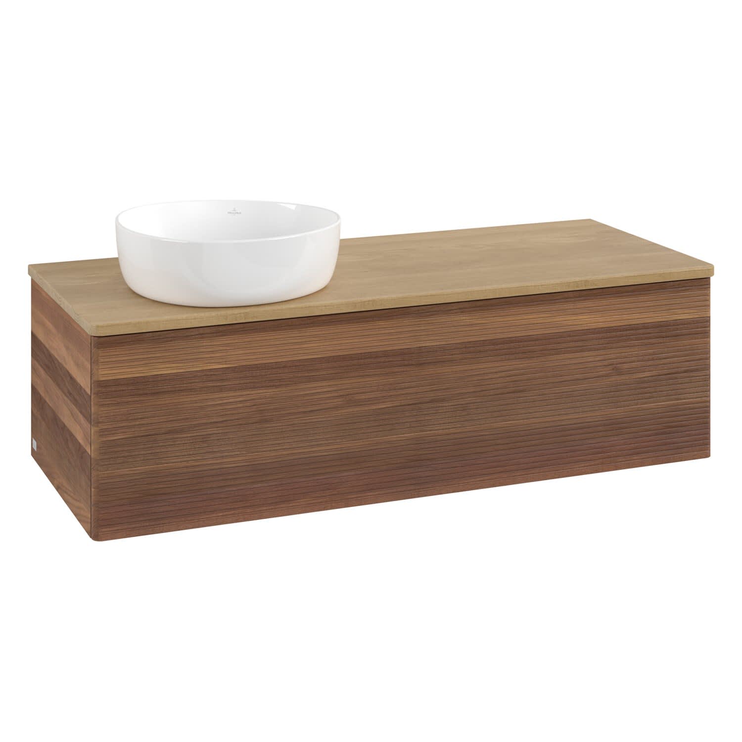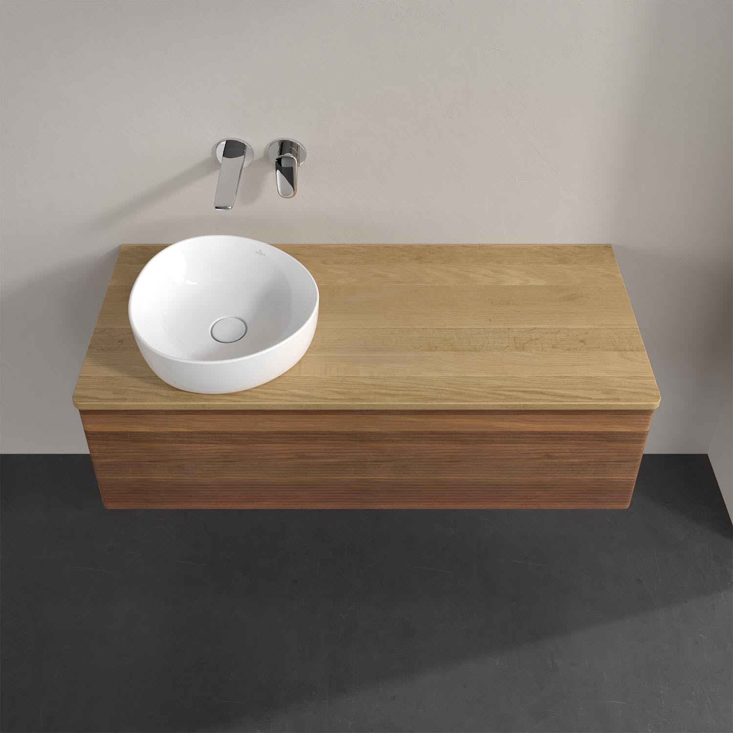 Villeroy & Boch Antao Waschbeckenunterschrank, 120 x 36 cm, 1 Auszug mit LED-Licht, Front mit Struktur, ohne Hahnloch, für Waschtisch links