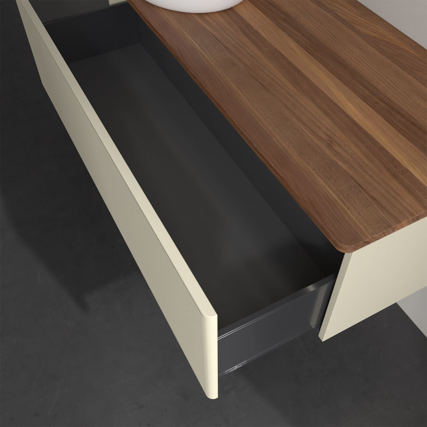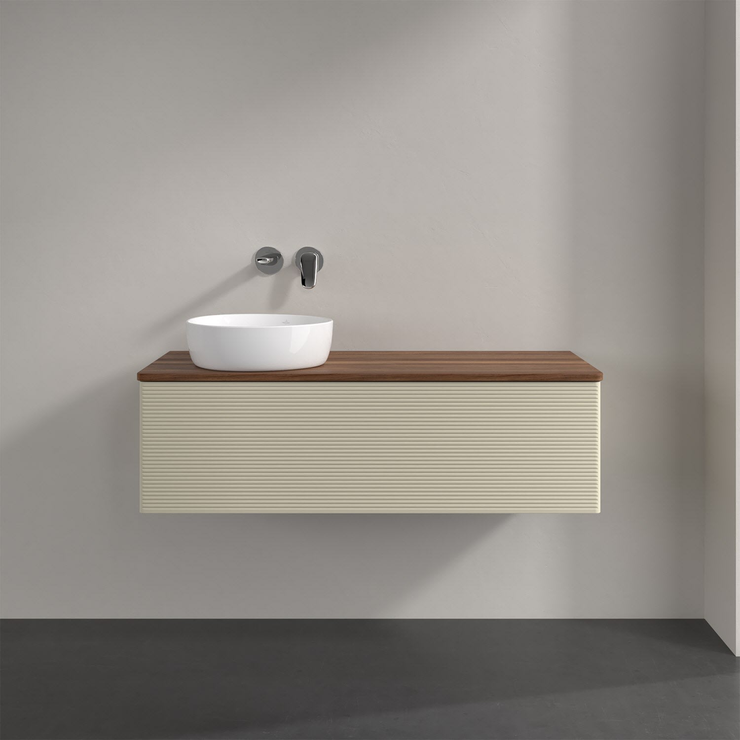 Villeroy & Boch Antao Waschbeckenunterschrank, 120 x 36 cm, 1 Auszug mit LED-Licht, Front mit Struktur, ohne Hahnloch, für Waschtisch links
