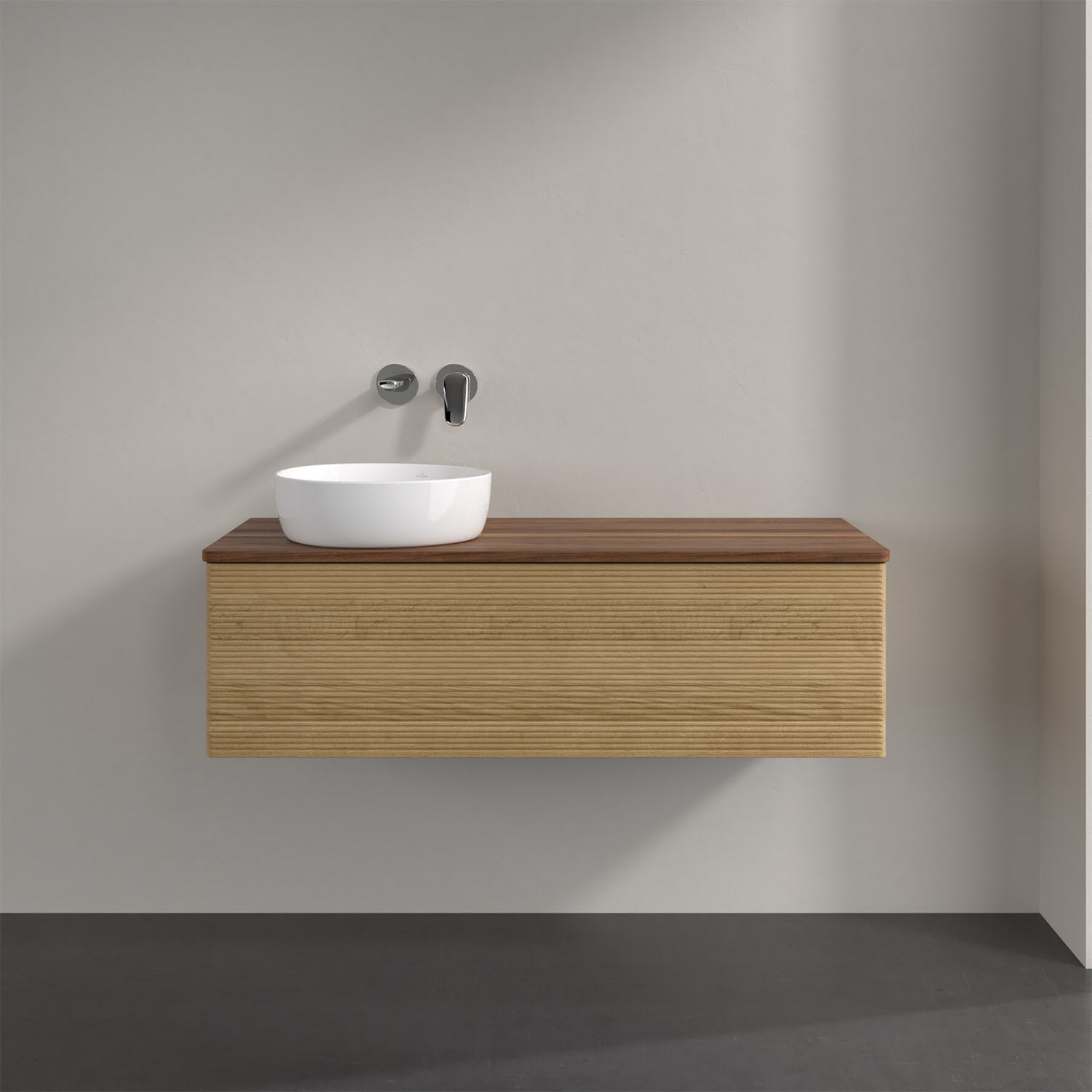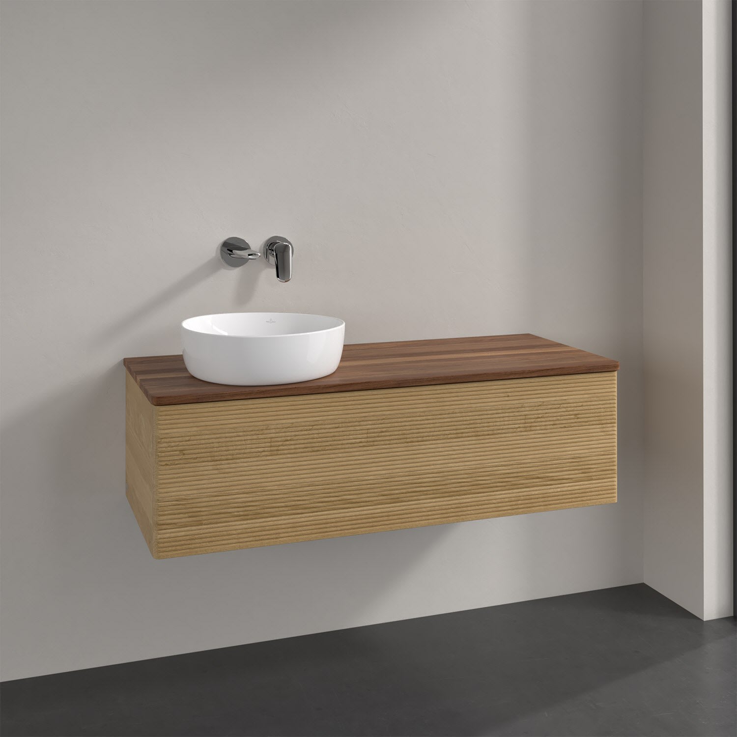 Villeroy & Boch Antao Waschbeckenunterschrank, 120 x 36 cm, 1 Auszug mit LED-Licht, Front mit Struktur, ohne Hahnloch, für Waschtisch links