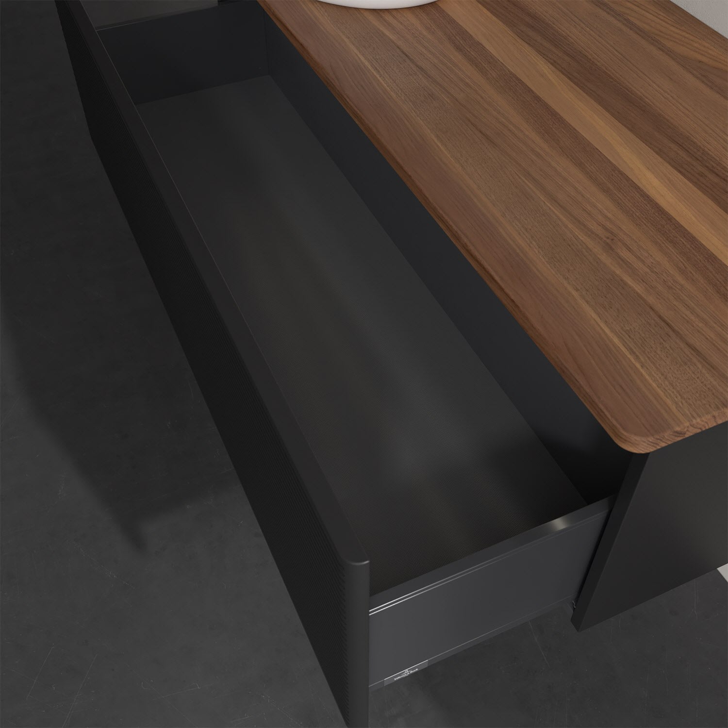 Villeroy & Boch Antao Waschbeckenunterschrank, 120 x 36 cm, 1 Auszug mit LED-Licht, Front mit Struktur, ohne Hahnloch, für Waschtisch links