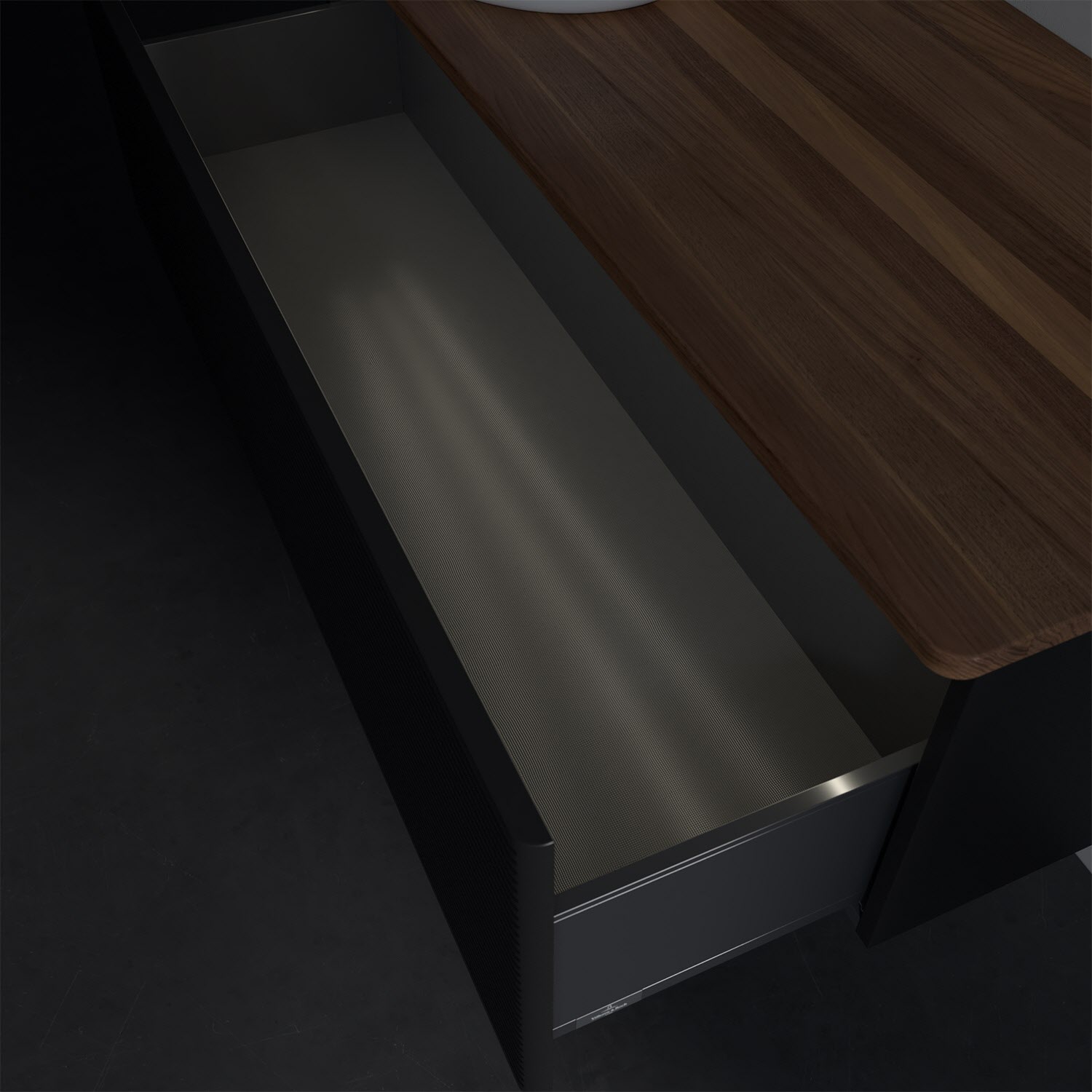 - kein Umfallen oder Verrutschen von Pflegeprodukten in den Schubladen dank rutschhemmendem Boden