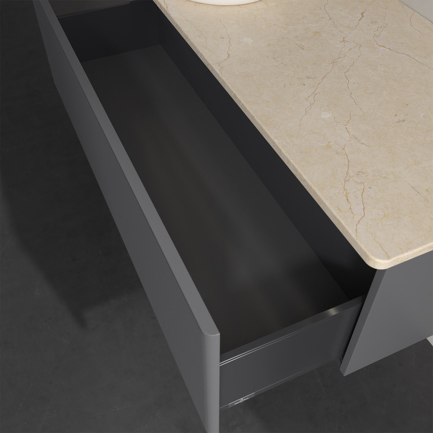 Villeroy & Boch Antao Waschbeckenunterschrank, 120 x 36 cm, 1 Auszug mit LED-Licht, Front mit Struktur, ohne Hahnloch, für Waschtisch links