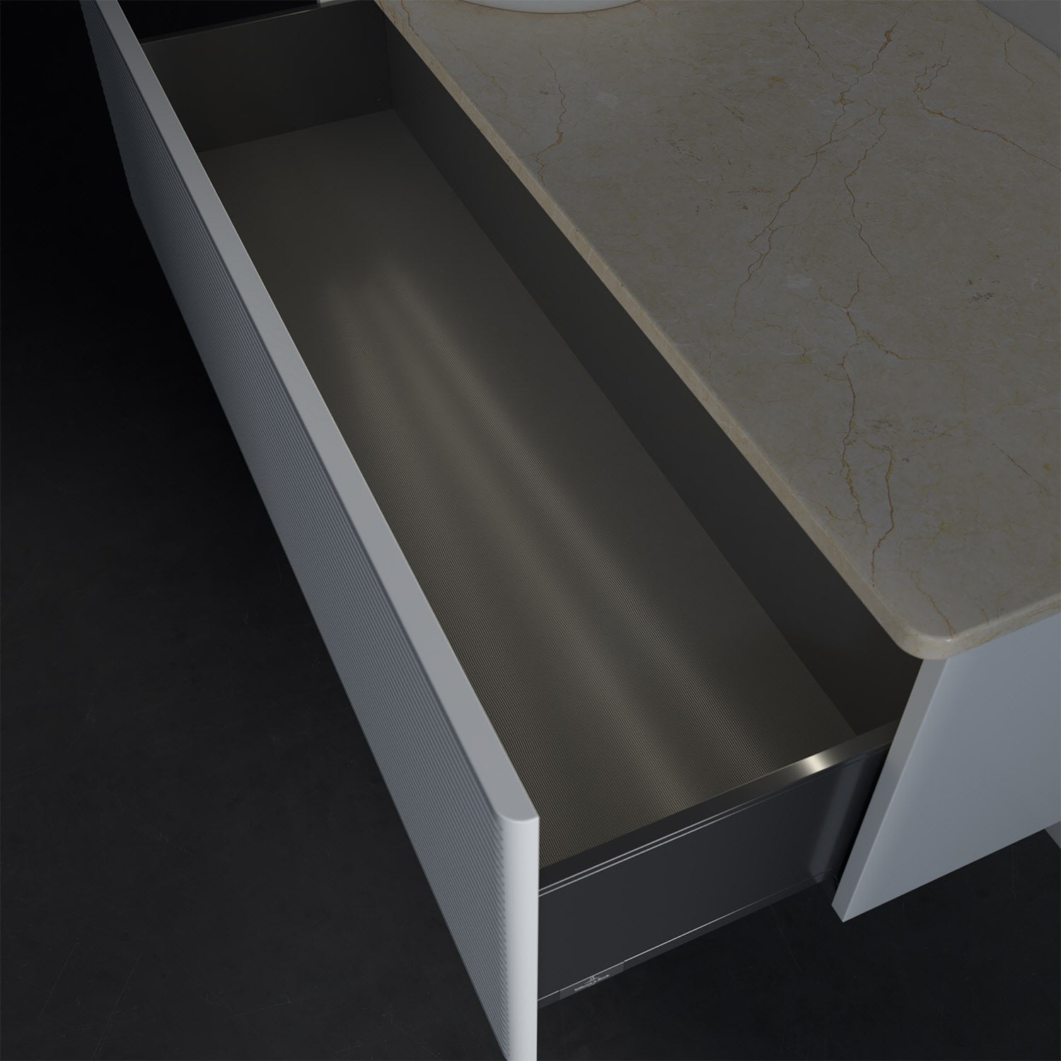 - kein Umfallen oder Verrutschen von Pflegeprodukten in den Schubladen dank rutschhemmendem Boden