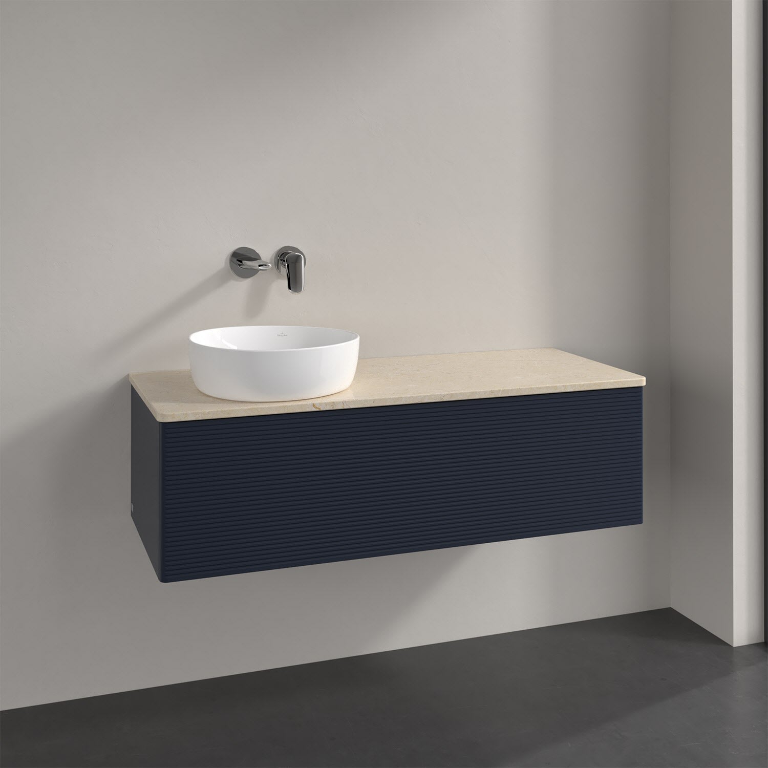 Villeroy & Boch Antao Waschbeckenunterschrank, 120 x 36 cm, 1 Auszug mit LED-Licht, Front mit Struktur, ohne Hahnloch, für Waschtisch links
