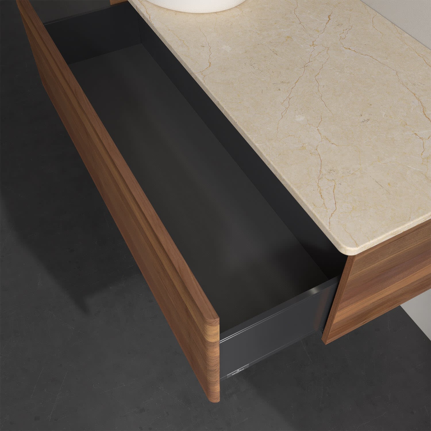 Villeroy & Boch Antao Waschbeckenunterschrank, 120 x 36 cm, 1 Auszug mit LED-Licht, Front mit Struktur, ohne Hahnloch, für Waschtisch links