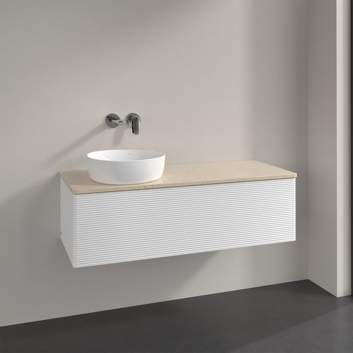 Villeroy & Boch Antao Waschbeckenunterschrank, 120 x 36 cm, 1 Auszug mit LED-Licht, Front mit Struktur, ohne Hahnloch, für Waschtisch links