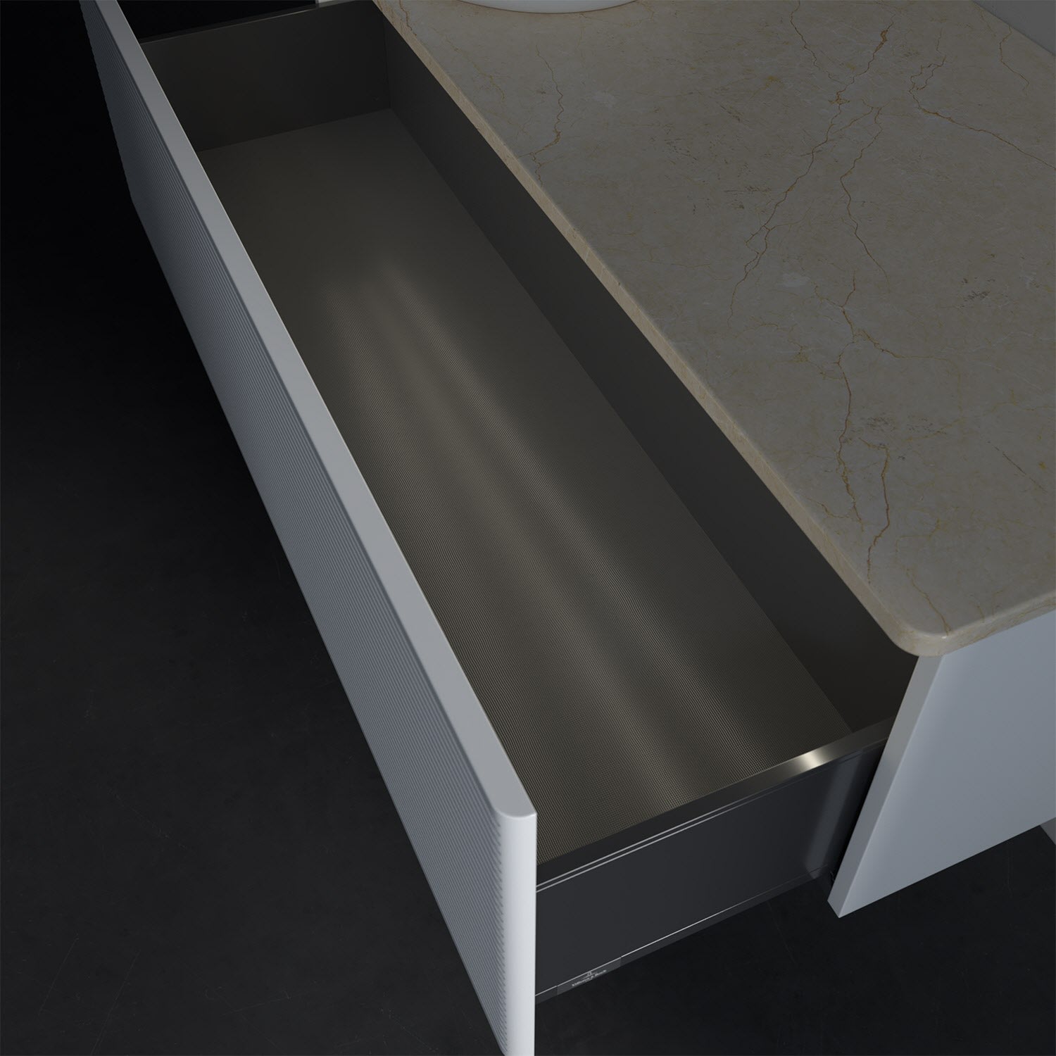 - kein Umfallen oder Verrutschen von Pflegeprodukten in den Schubladen dank rutschhemmendem Boden