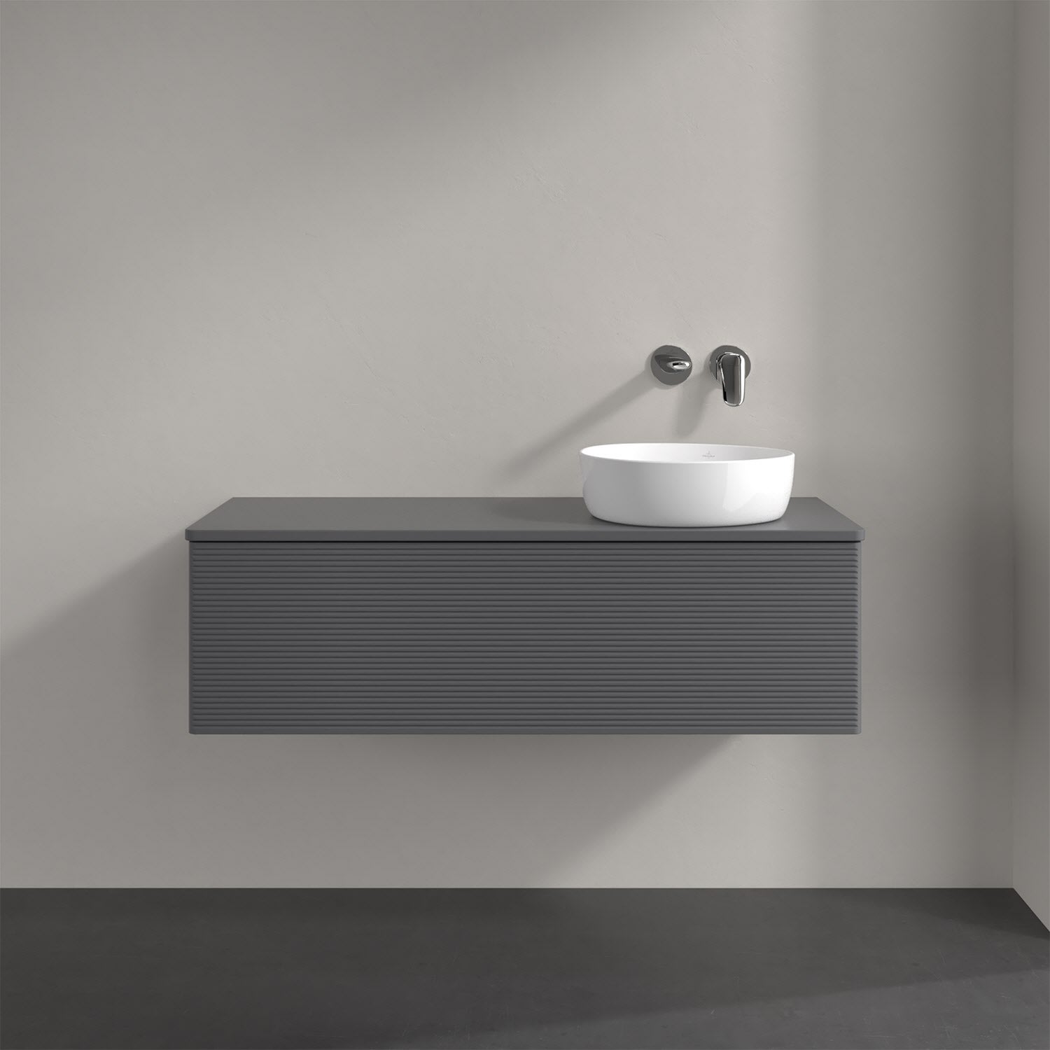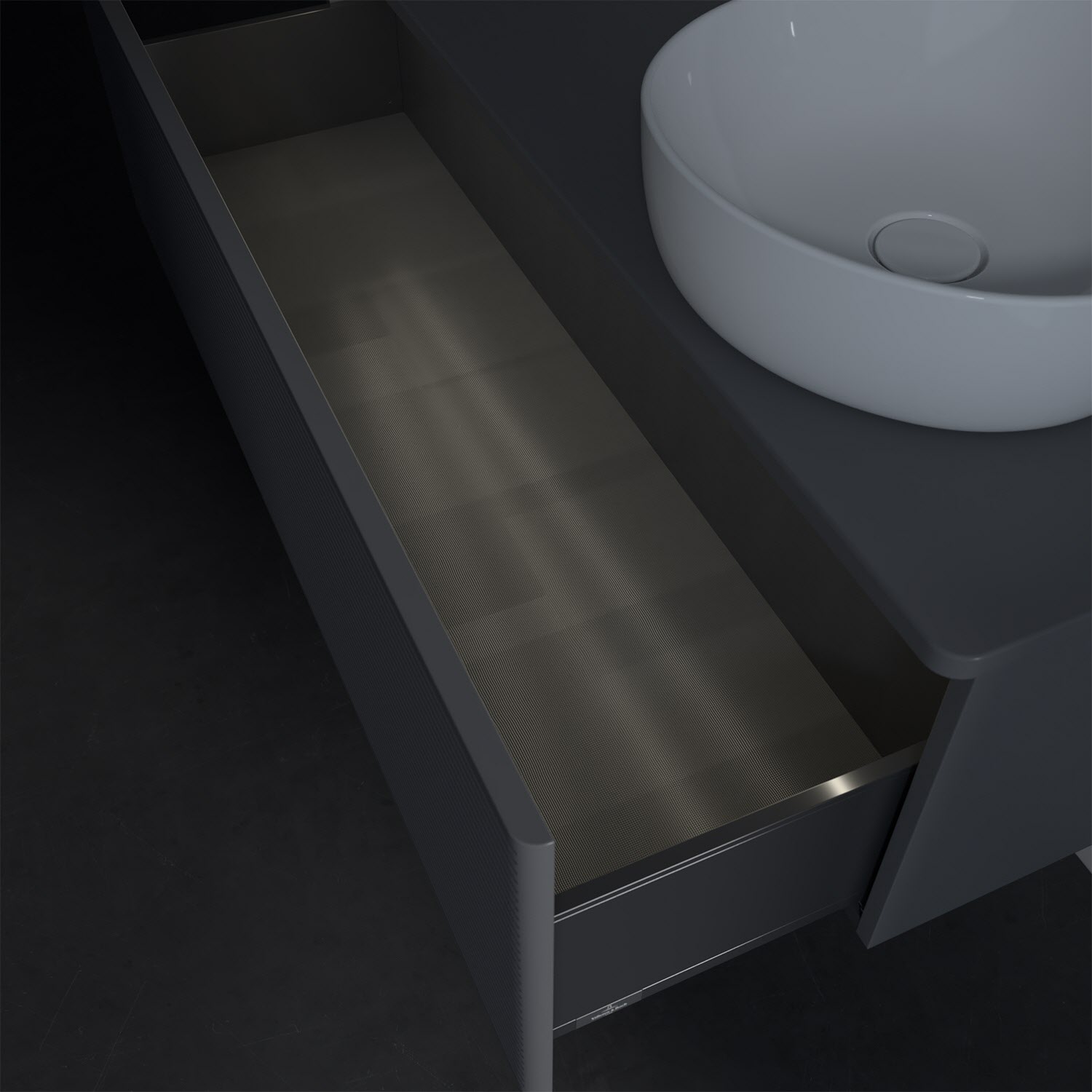 Villeroy & Boch Antao Waschbeckenunterschrank, 120 x 36 cm, 1 Auszug mit LED-Licht, Front mit Struktur, ohne Hahnloch, für Waschtisch rechts